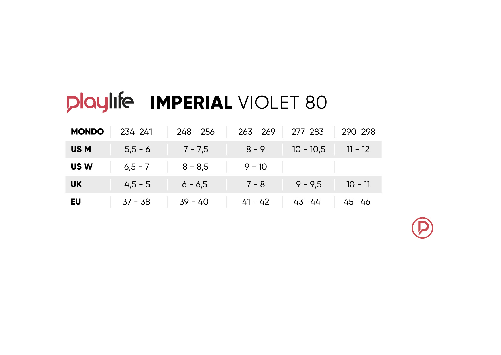 With its vibrant violet color scheme and the classic white base, the Imperial 80 from Playlife is addressed to female skaters or skaters with a slim to medium foot shape.
