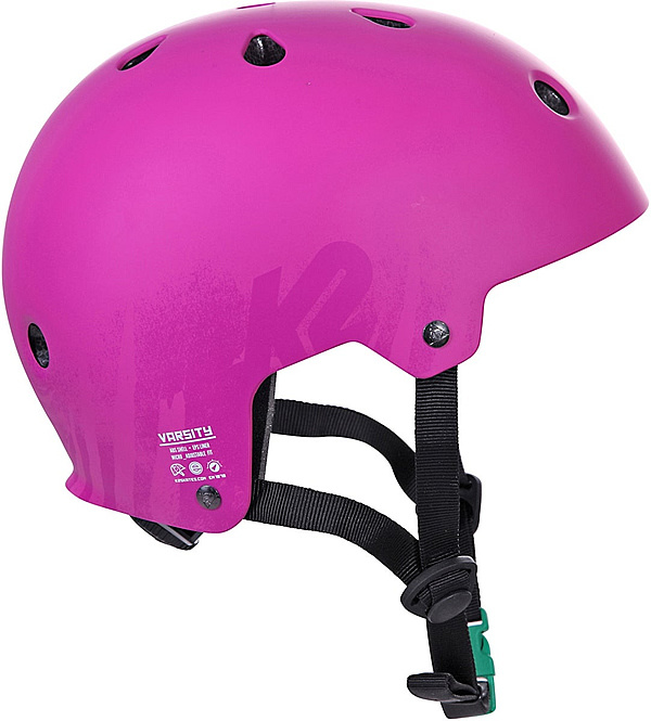 Vysoce kvalitní dětská inline helma K2 Varsity Kid pink je výbornou volbou na inline brusle, skateboard i BMX, použít jí však můžeš i na běžnou cyklistiku. Oproti běžné "cyklohelmě" Ti helma Varsity zaručí výrazně vyšší míru bezpečí díky větší tuhosti skořepiny a konstrukci dokonale chránící zadní část hlavy. helma v ABS Hardsheel konstrukci je velmi lehká a pohodlná, má odnímatelné polstrování, pasivní ventilaci a nastavitelnou velikost kolečkem.