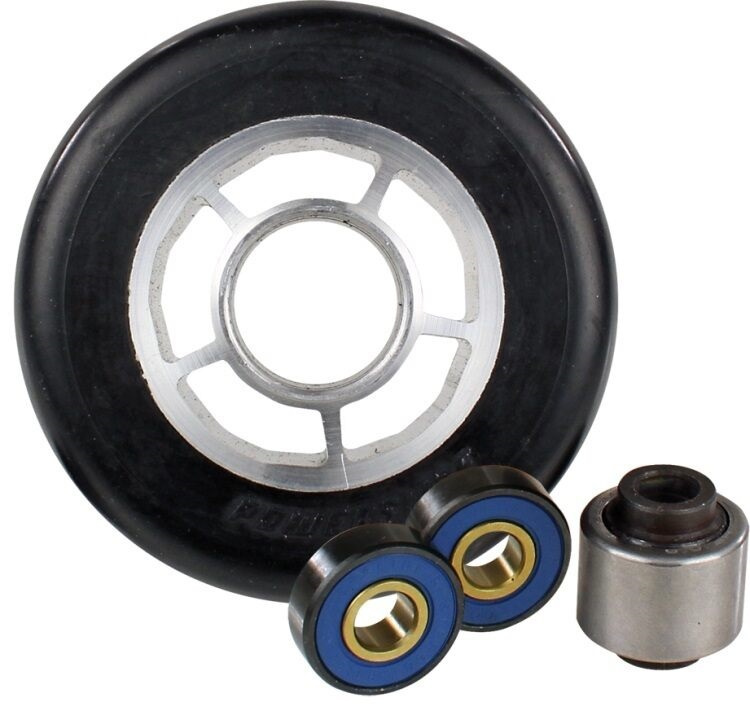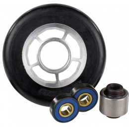 Komplet set- pryžové kolečko s hliníkovým středem a jednosměrná ložiska. U všech koleček s malým poloměrem vzniká během točení k lehké odchylce mimo osu otáčení. To je způsobeno ventilkem, který musí být vždy umístěn k jedné straně kolečka tak, aby byl snadnější přístup hustilkou k ventilku. Poměr váhy ventilku k samotnému kolečku proto způsobuje nižší vyosení otáčení, které však nemá vliv na samotnou jízdu