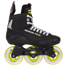 Kolieskové korčule na inline hokej majú klasickú hokejovú topánku ako ľadová verzia. Vybavené sú krátkym výborne ovládateľným rámom, kde sú menšie kolieska často osadené do kolísky (stredné sú väčšie než prvné a posledné) pre výbornú ovládateľnosť.