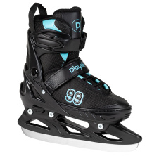 Detské ľadové korčule s praktickou nastaviteľnou veľkosťou. Korčule so šnúrkami v spodnej časti topánky lepšie držia nohu v korčuli. Korčule iba s prackami si dieťa ľahšie zapne, ale usadenie nohy nie je väčšinou tak dobré.