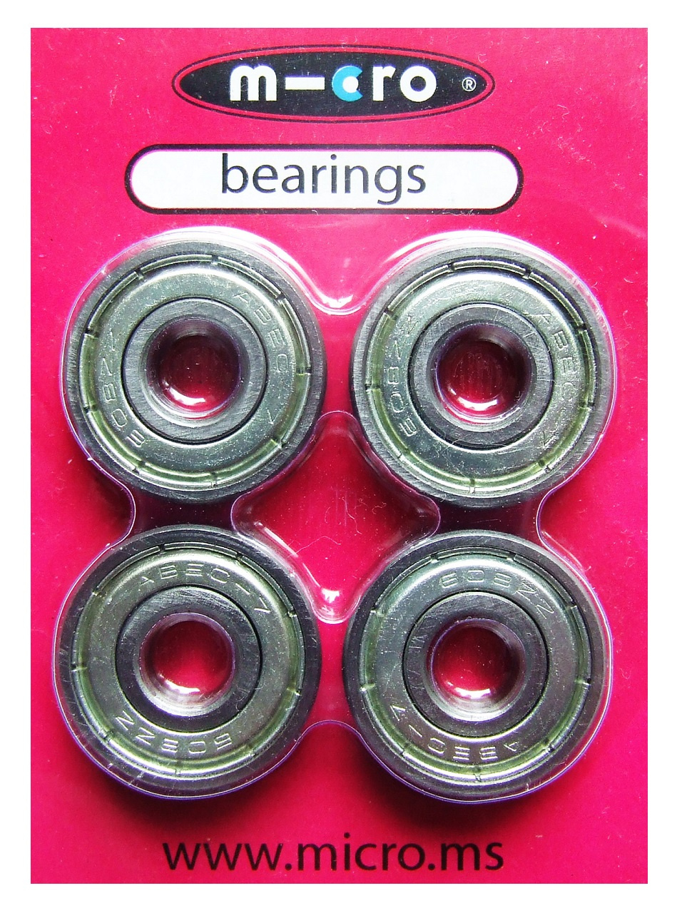 Náhradní ložiska do bruslí, koloběžek a skateboardů od švýcarského výrobce Micro. Originální ložisko Micro je vhodné pro vysokou zátěž. Jedná se o ložisko standardních rozměrů a je kompatibilní se všemi běžnými kolečky nejenom do koloběžek, ale i bruslí a skateboardů. V balení jsou 4ks těchto ložisek.