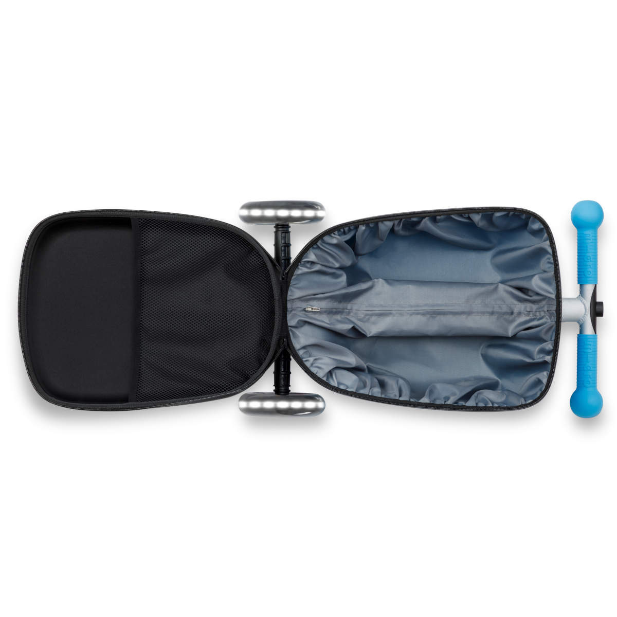 Po jednoduchém vyklopení hliníkové nášlapné desky se z kufru stává dětská koloběžka, se kterou děti snadno a hravě popojíždějí na letištích, nádražích nebo mezi přestupy. Složený kufr lze tahat za sebou i ergonomicky tlačit před sebou.