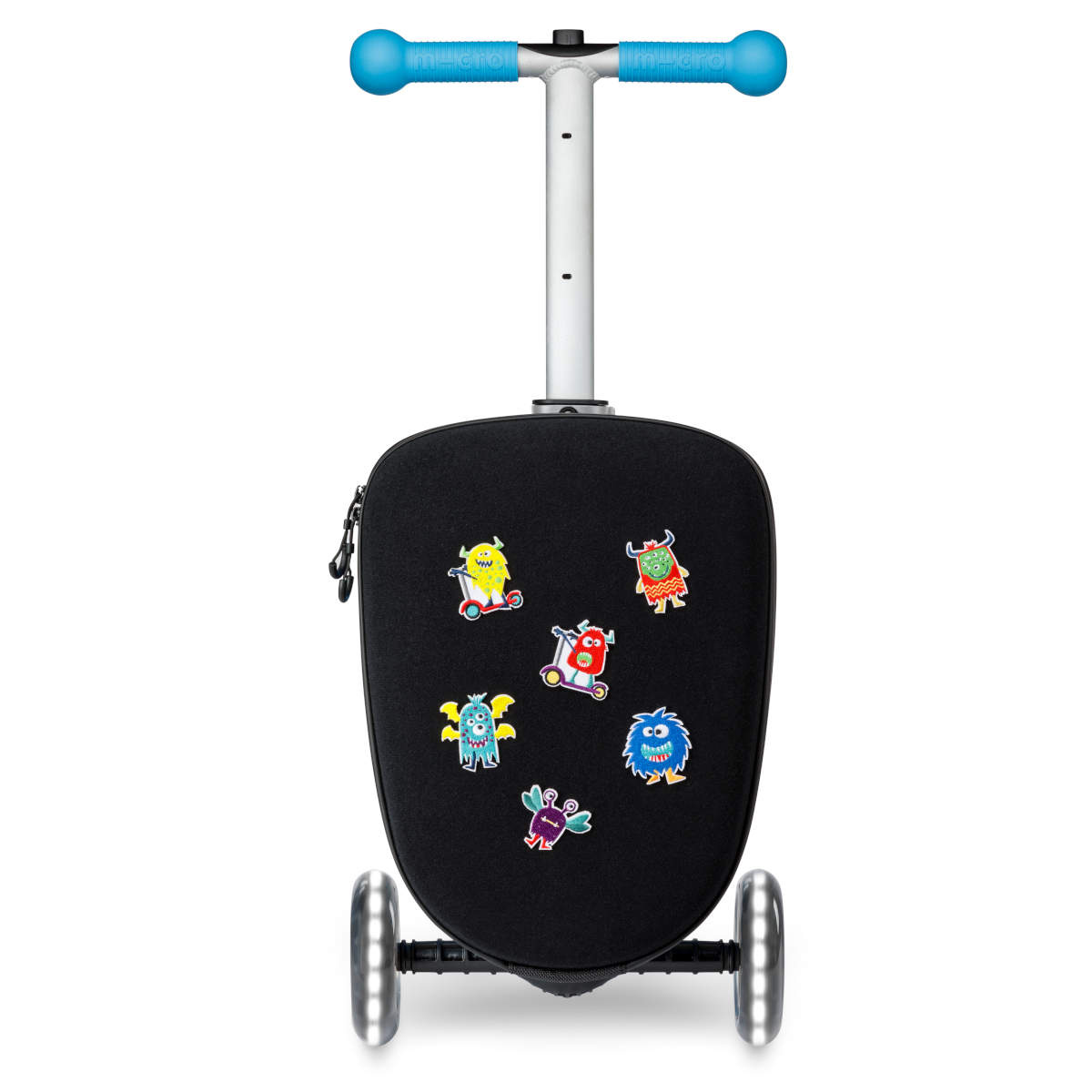 Micro Luggage Junior Patch & Play Blue je dětský kufr a koloběžka v jednom, nyní s novou možností kreativního zdobení nálepkami na suchý zip, díky kterým si může každý malý cestovatel kufřík ozdobit podle vlastní fantazie. Cestování tak bude nejen praktické, ale i zábavné a osobité!