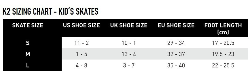K2 o průměru 72 mm mají ideální poměr rychlosti a stability a jsou vhodné pro rozvoj bruslařských dovedností malých bruslařů. Svou tvrdostí 80A patří ve své kategorii spíše k měkčím kolečkům, což zajistí dobré tlumení nerovností, dobrou přilnavost a vysoký jízdní komfort. Velikosti koleček: 29-34: 70mm (max 72mm), 32-37 a 35-40: 72mm (max 76mm)