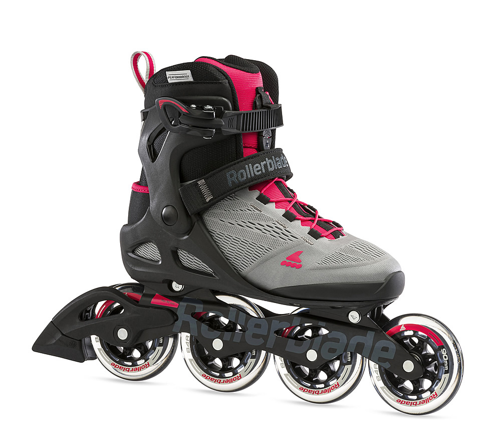 Dámské fitness inline brusle Rollerblade Macroblade 90 W jsou určeny na středně dlouhé projížďky. Skvělá botička a dobré polstrování umožňuje pohodlné usazení nohy po celou dobu bruslení. Vnitřní botička Performance liner je navržena pro pohodlí nohy s ohledem na pohyb při bruslení. Výplň s pamětí zaručuje dokonalé přizpůsobení tvaru jakékoliv nohy a zabraňuje otlačení chodidel. K vysokému komfortu přispívá stahování Speedlace. Hliníkový rám je pevný, odolný, stabilní a v tvrzené verzi má zvýšenou nosnost a tuhost v torzi = lepší přenos energie, žádné ztráty z kroucení. Kolečky 90 mm/85A točí ložiska SG9.