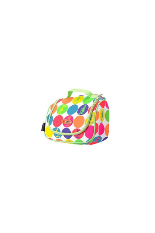 Svačinová taška je uzavíratelná na zip. Vnitřní část je potažená vodě-odpudivým materiálem a je omyvatelná. Taška je vybavená poutkem na přenášení a nastavitelným popruhem na nošení přes rameno.