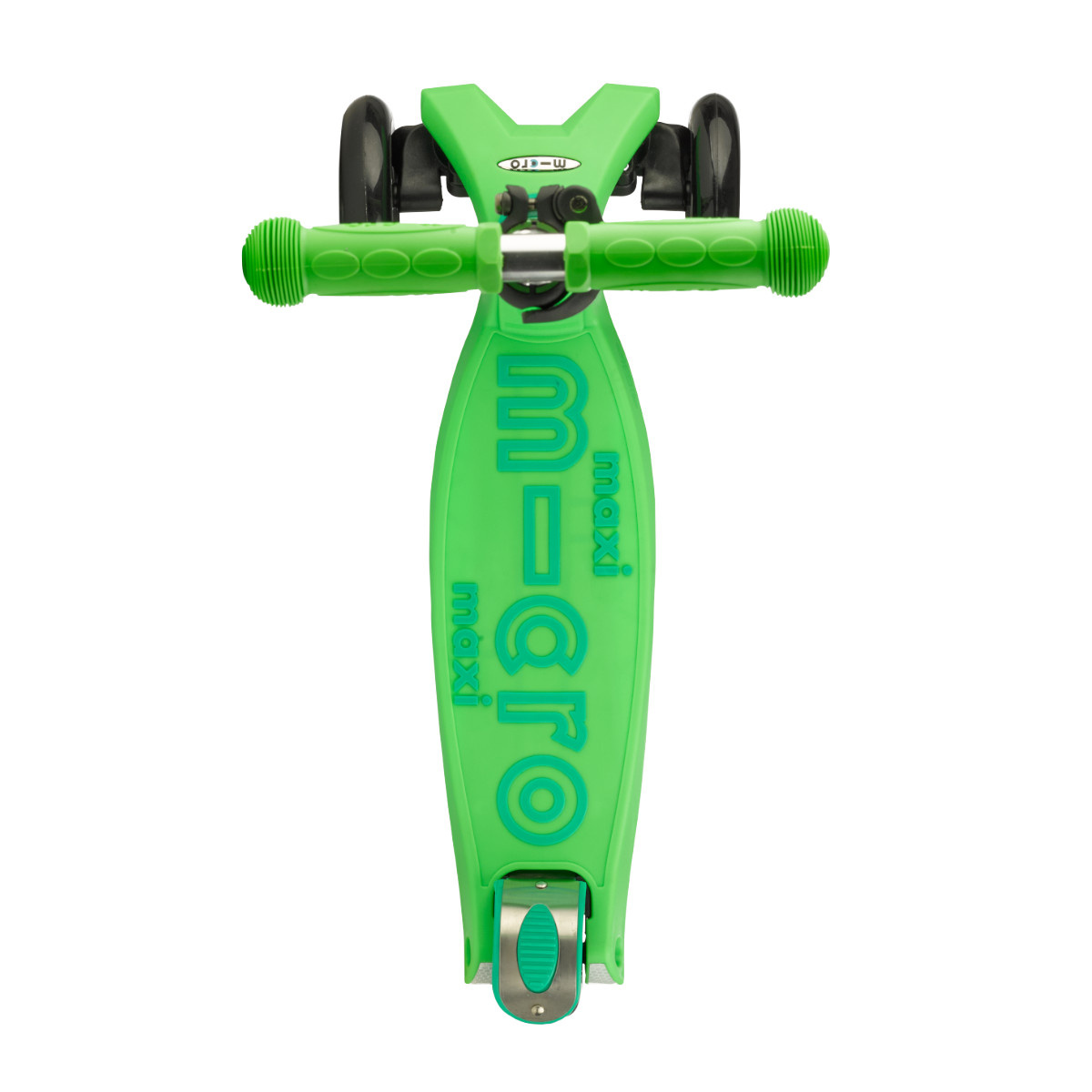 Zelená dětská koloběžka Micro Maxi DeLuxe je navržena ve Švýcarsku a je zárukou kvality a dlouhé životnosti.