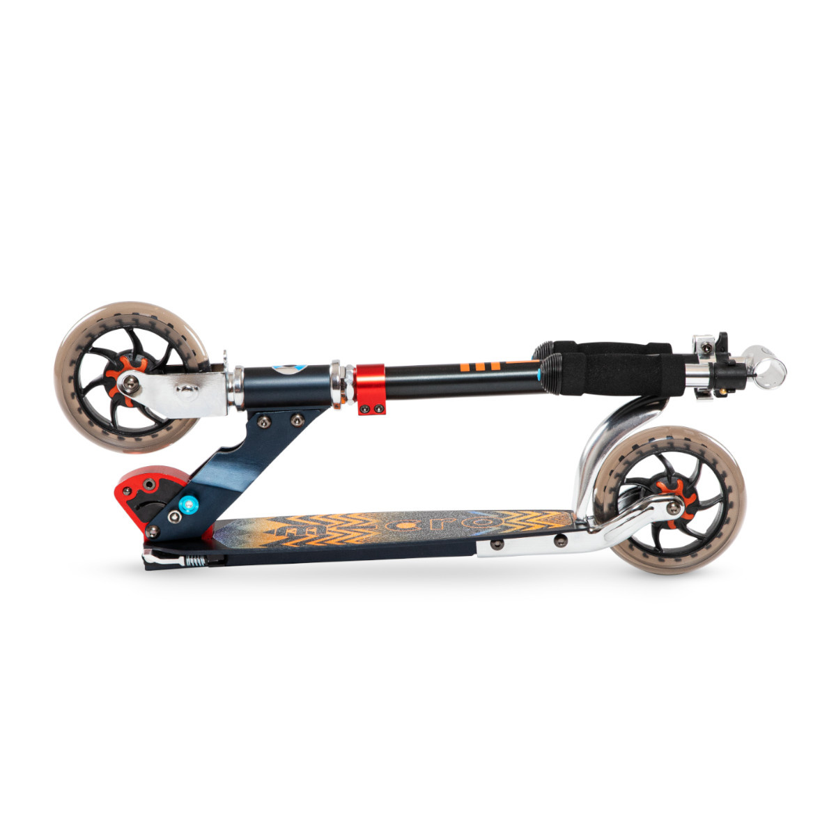 Kvalitní skládací mechanismus umožní spolehlivé a snadné složení a rozložení koloběžky. Ke složení je nutné stisknout oba čudlíky po stranách skládacího mechanismu. Pro rozložení pak jenom čudlík na pravé straně.