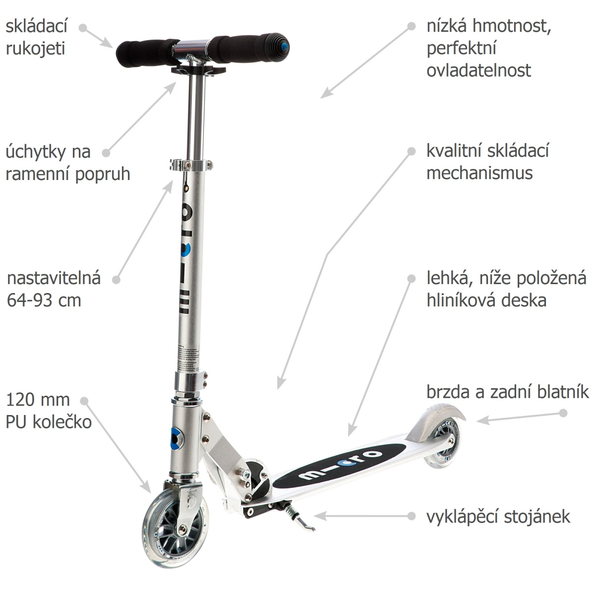 Popis skládací koloběžky Micro Sprite Alu