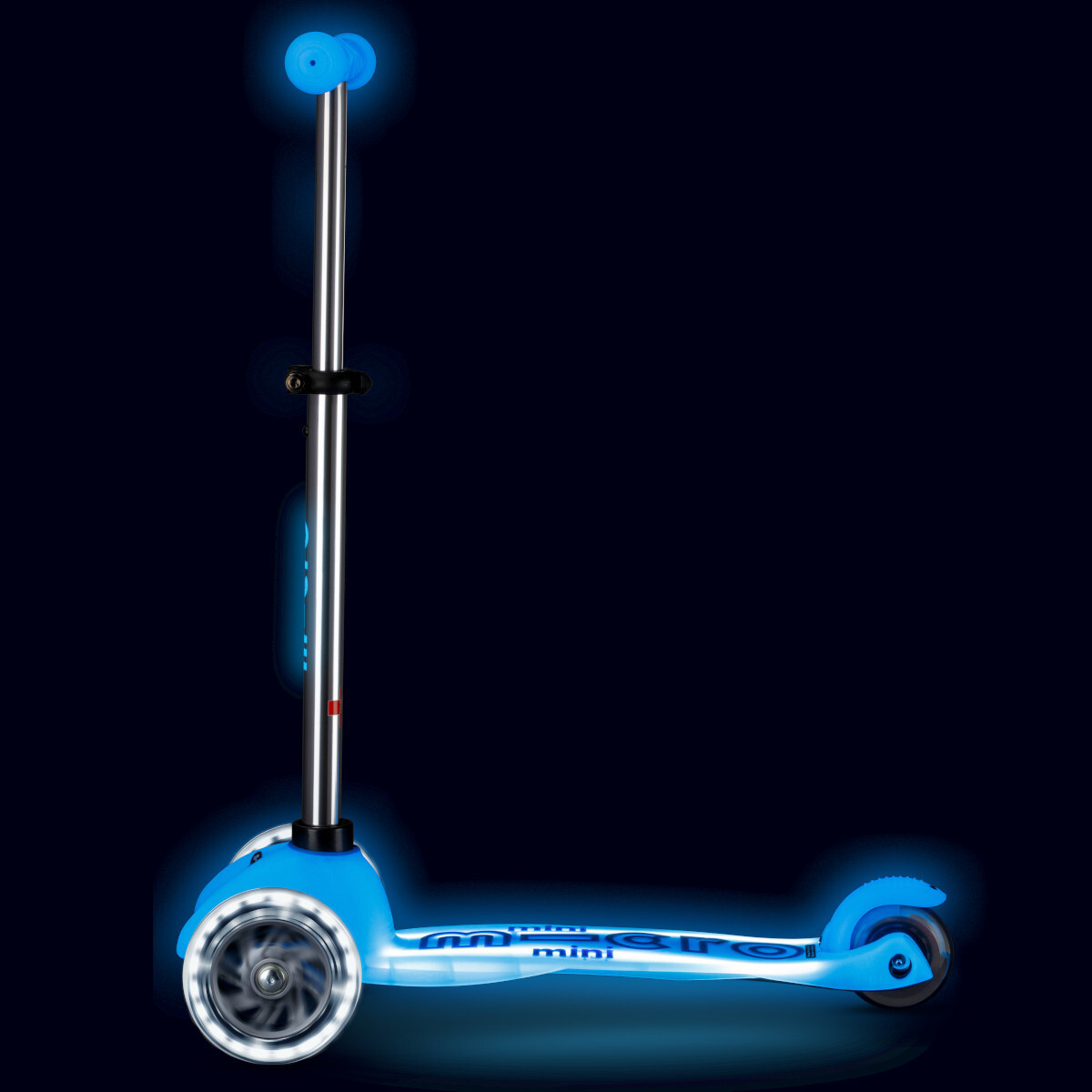 Dětská koloběžka Micro Mini DeLuxe byla vyvinuta ve spolupráci se švýcarskými lékařskými experty a je určená předškolním dětem ve věku cca od 2 do 5 let. koloběžka zlepšuje rovnováhu, koordinaci a motorické dovednosti, jež napomůžou k přechodu na kolo či jiné prostředky. Hlavními přednostmi je speciální patentovaný mechanismu, který zatáčí nakláněním řídící tyče a lehkým přenesením rovnováhy, výškově nastavitelná řídící tyč, vysoká stabilita pomocí 3 koleček, 2 přední LED kolečka a velice nízká váha. Nášlapná deska, rukojeti řídítek, brzda i nápis Micro na řídítkové tyči se během dne nabíjejí slunečním zářením nebo umělým UV světlem a po setmění jemně září. Model „Plus“ přidává LED podsvícení nášlapné desky, které se aktivuje pohybem zadního kolečka a vytváří tak působivé osvětlení pro jízdu za šera nebo ve tmě.