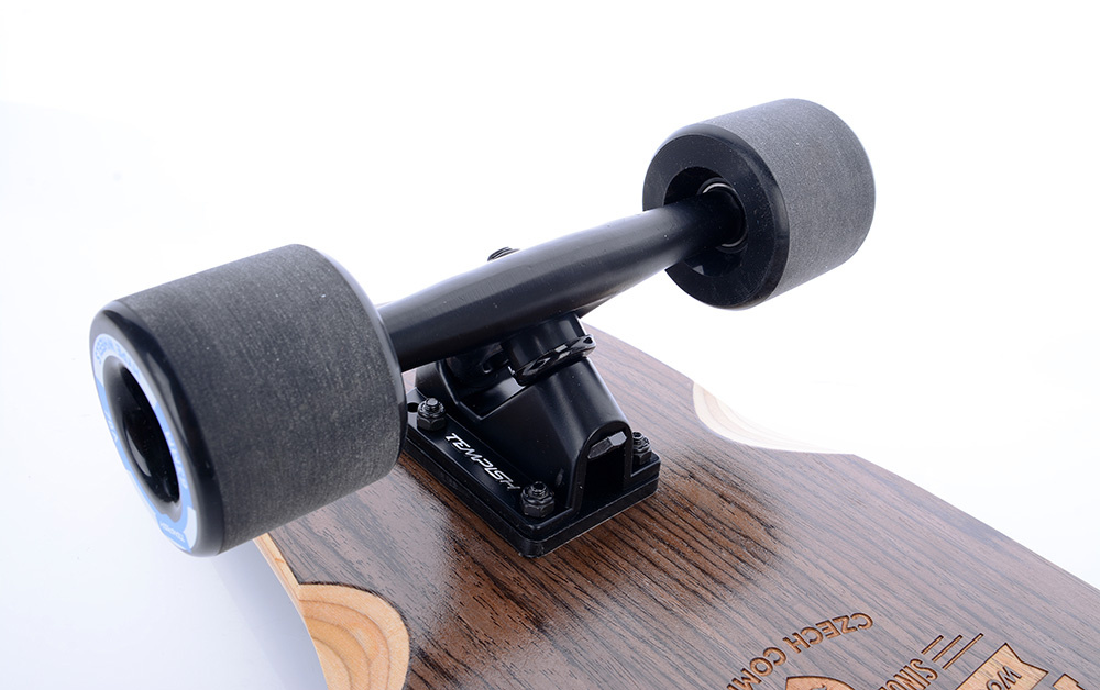 longboard je osazen kolečky o velikosti 63 mm s tvrdostí 84A, díky čemuž se hodí pro pohodlnou jízdu po všech městských terénech. kolečka mají v sobě zabudovány ložiska ABEC 9.