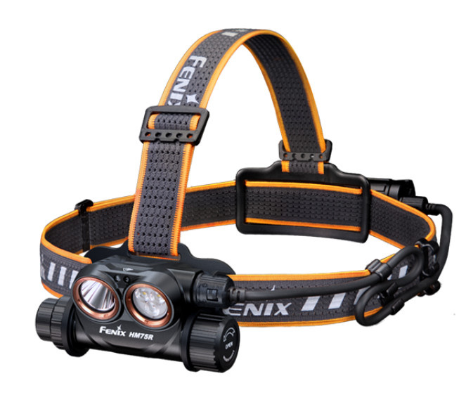 Nabíjecí čelovka Fenix HM75R disponuje dvěma světelnými kužely s výkonem až 1600 lumenů a silným červeným světlem s výkonem až 120 lumenů. Přičemž dálkový reflektor se špičkovou LED Luminus SST-40 vytváří dobře zaostřený světelný paprsek s dosvitem až 223 metrů a druhý reflektor s výkonnými LED Luminus SST-20 má světelnou stopu velmi širokou a plynulou s dosvitem do vzdálenosti 60 metrů. Světelný tok dálkového reflektoru je až 1600 lumenů, reflektor s širokým kuželem nabízí maximální výkon 1000 lumenů a neutrální odstín světla. Světlo z obou reflektorů nelze kombinovat, snadno se mezi nimi přepíná otočným voličem na boku čelovky.