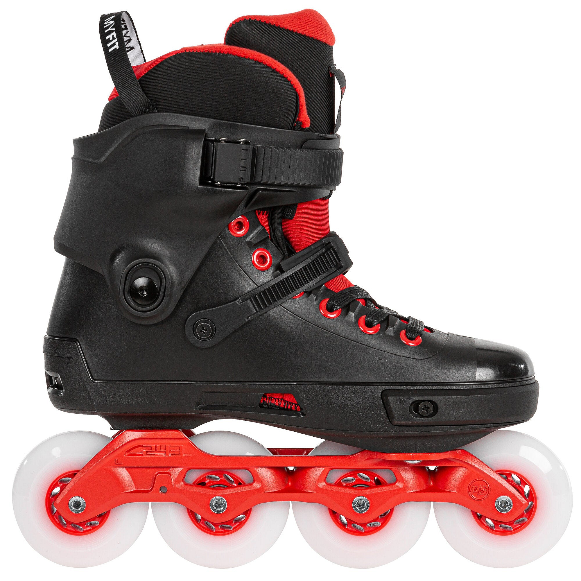 The Powerslide NEXT Black Red 80 is a formidable urban inline skate, fast, durable, and customizable, this impressive skate sets a new standard for urban skating. It all starts with the renowned NEXT hardboot that’s not only precise, but also tough as nails and ready for intense urban inline skating. Skate fast, turn quickly, jump big gaps, the capable NEXT Black Red 80 can do it all with style. The hardboot is complemented with a supportive cuff that can be customized to match your individual skating needs. You can easily adjust the height and forward flex of the cuff, giving you the perfect fit every time. Of course, comfort is key and the NEXT Black Red 80 comes through big time with a heat-moldable MYFIT Recall Dual Fit liner. The liner incorporates memory fit padding that dampens vibrations, helps cushion landings, and provides superb comfort even during long skate sessions. The Powerslide NEXT Black Red 80 comes with the famous TRINITY 3-point mounting system that gives skaters a low center of gravity that gives you excellent stability and control. The TRINITY system also allows you to adjust the position of the frame to amplify your skating performance. Looking for a thrill? Mounted to the boot are the light and rigid Elite cast aluminum frames that have been proven to be an excellent frame for urban skating. The Elite frame now matches your shoe sizes. We deliver the skate with the 243mm/4x80mm setup for size 36-43, and from size 44 up the skate is equipped with a 275mm/4x90mm frame enabling you to upgrade your Next 80 to a Next 90! Riding on fast and grippy 4x80mm Spinner wheels and super-smooth WICKED ABEC 9 bearings, you get a fast, intense ride every time. Our mission with the Powerslide NEXT Black Red 80 was to reach the perfect balance of performance, quality, and comfort in a hard boot urban inline skate. Mission accomplished.