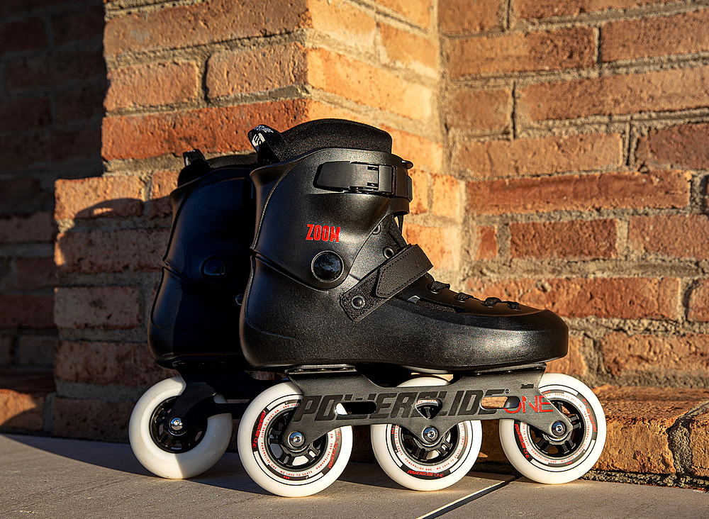 kolečkové brusle Powerslide Zoom mají pevnou a odolnou skeletovou botu, která je osazena krátkým hliníkovým rámem, kvalitními ložisky ABEC 7 a třemi 100mm kolečky Powerslide ONE 82A umožňujícími rychlou jízdu. Díky krátkému rámu mají brusle zvýšenou ovladatelnost a odolnost, která se hodí pro jízdu slalomem i pro zdolávání menších městských překážek.