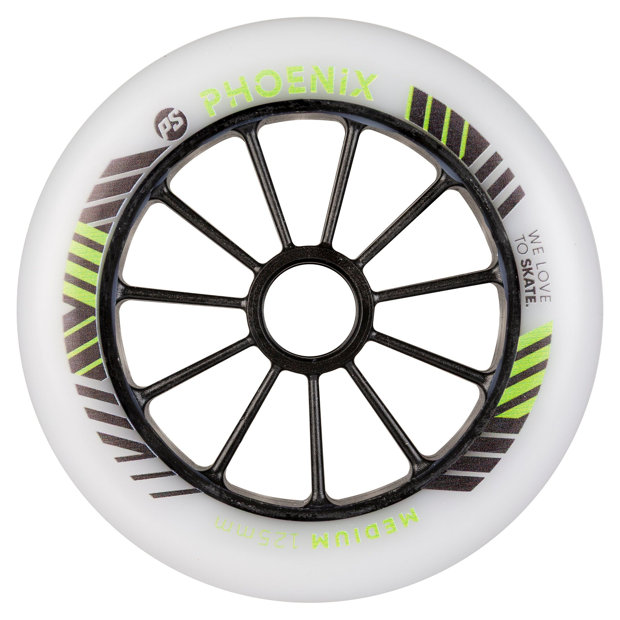 Introducing the Powerslide Phoenix Wheels, engineered for competitive inline speed skaters seeking optimal performance. Available in 100mm, 110mm, and 125mm diameters, and in medium (~84A) and hard (~86A) hardness options, these wheels cater to various racing preferences.