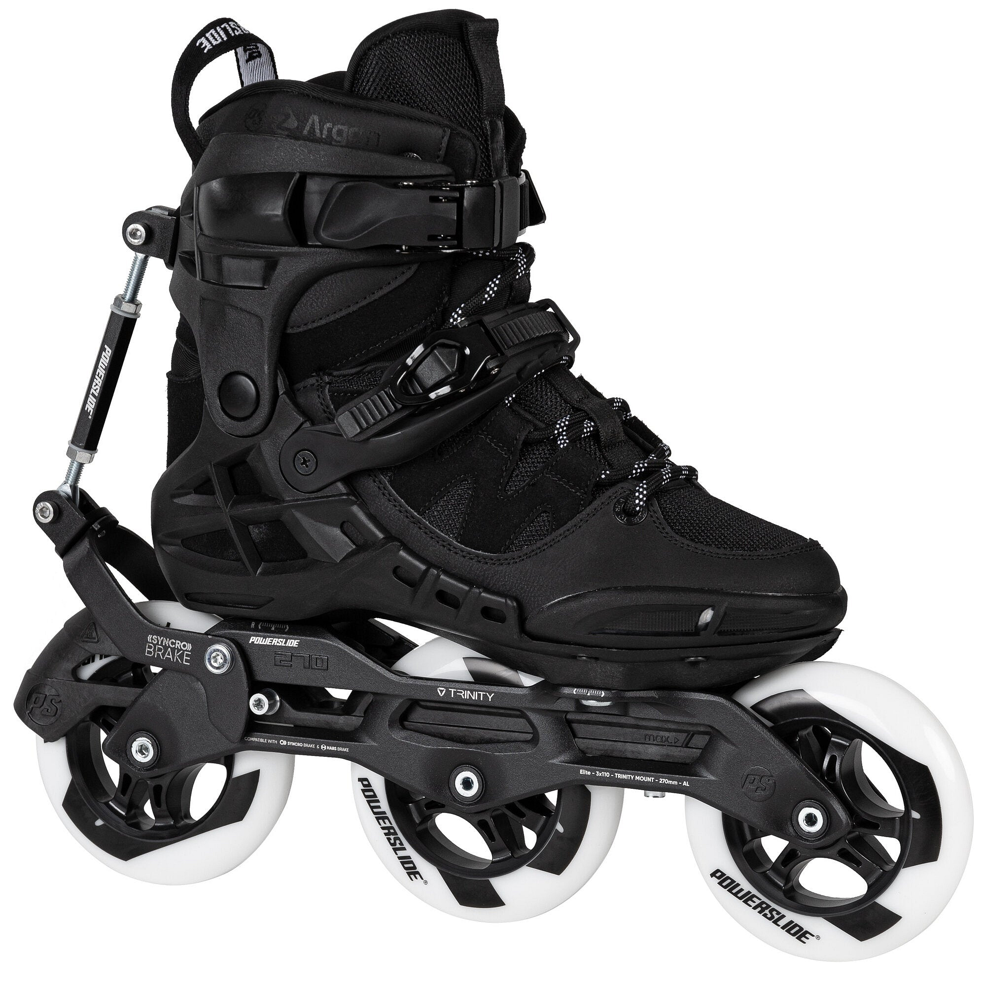 A fast and stable inline fitness skate with a throwback retro ‘90s sneaker trainer-inspired style, it’s the Powerslide Argon Syncro Black 110. This impressive fitness skate comes packed with innovative features that will help you push your limits and see what you’re really capable of on inline skates. The skate has a light and rigid glassfiber reinforced plastic shell accompanied by a supportive cuff. The upper portion of the boot is made of polyurethane leather that hugs your foot, giving you the perfect fit and excellent responsiveness. The highlight of the Argon Syncro Black 110 is the innovative Syncro brake that stops all three wheels at the same time and eliminates the need to tilt your foot back to stop or slow down. Have confidence when you’re skating knowing you have a Syncro brake that gives you complete control. This fitness skate is designed around the patented TRINITY 3-point mounting system that gives you a low center of gravity, great stability, and excellent power transfer to the 270mm Elite frame. Complete with 110mm Infinity wheels and smooth ABEC 9 bearings, making the Argon Syncro Black 110 a fantastic fitness skate that’s always ready to roll.