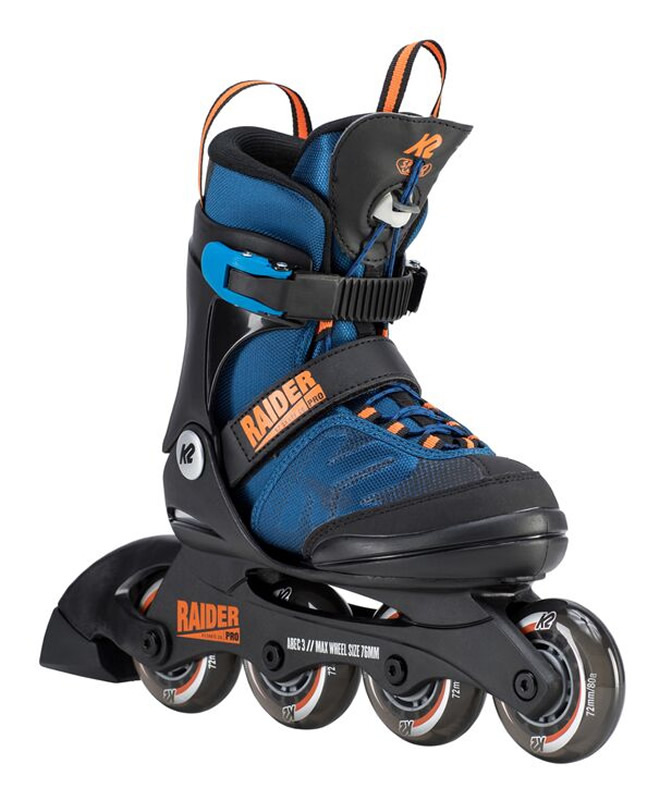 Detské kolieskové korčule K2 Raider Pro je možné jednoducho rozmerovo prispôsobiť pomocou jednotlačítkového mechanizmu. Získate tým až 5 veľkostí, takže korčule porastú s nohou vášho dieťaťa. Pohodlný systém fixácie K2 Speed Lace umožňujúci rýchle zaviazanie korčúľ jedným zatiahnutím a komfortná topánka K2 Softboot, ktorá si zapamätá tvar chodidla, z nich robia perfektné kolieskové korčule pre všetkých mladých orčuliarov. Povestný Stability Cuff (konštrukcia spevňujúca členok) zaručuje perfektné držanie členkov, najpodceňovanejší a zároveň najdôležitejší faktor pri výbere kvalitných detských korčúľ. Riešenie je presne na mieru na úzke detské členky, ktoré dokáže pevne zafixovať a zároveň nikde netlačia. Maximálna veľkosť koliesok môže byť 76mm. Topánky sú vybavené reflexnými prvkami pre bezpečnosť vašich ratolestí.