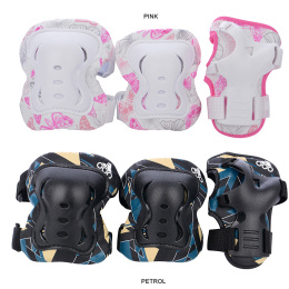 Univerzální 3-sada chráničů na kolena, lokty a zápěstí. Flexibilní konstrukce chrániče a jeho plastové výztuhy velmi pohodlně "padnou" na chráněné části těla. Jsou velmi lehké a minimálně omezují v pohybu. Vrchní materiál je odolný proti otěru. Vnitřní materiál výborně odvádí pot a vlhkost z těla. Elastický materiál se přizpůsobuje dle pohybu bruslaře. Možno designově kombinovat s helmami STRYKER.