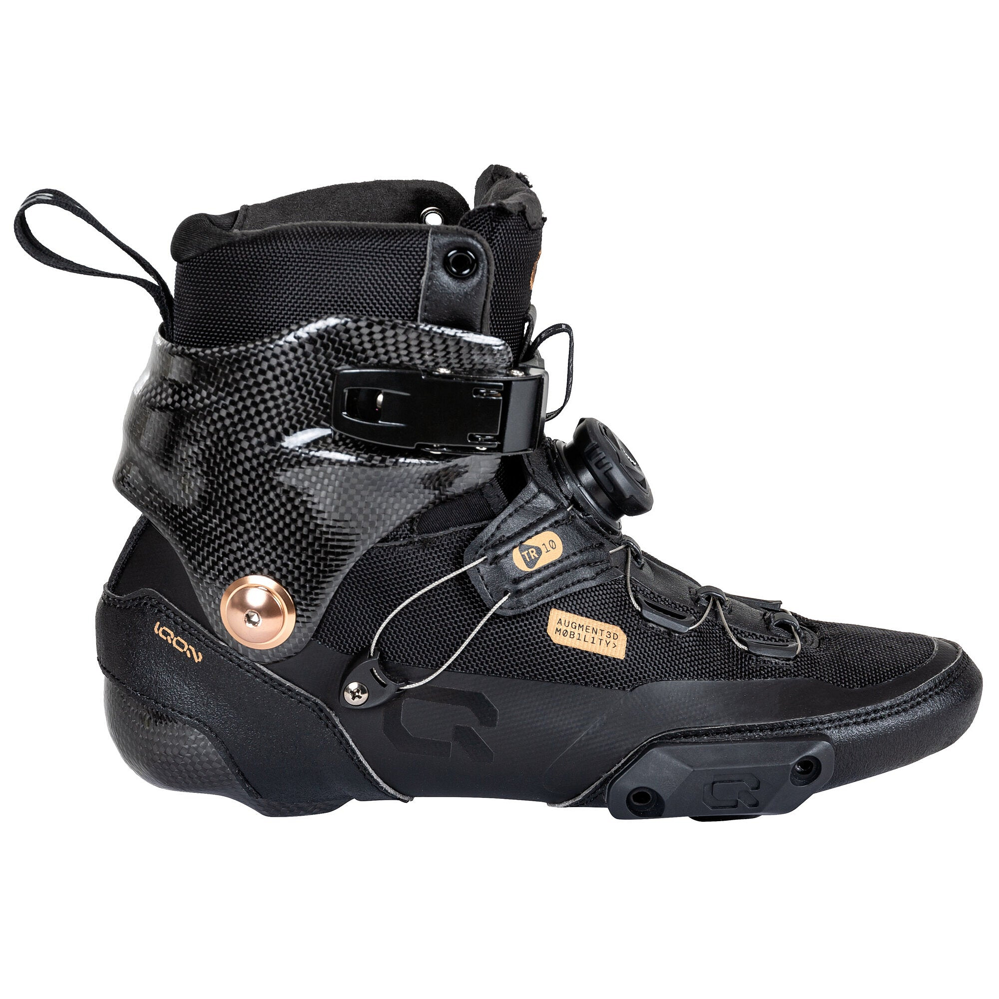 The TR10’s craftsmanship is exceptional. Handmade and fully heat-moldable, these skates provide a customized fit. The supportive carbon cuff ensures superior control, while the innovative Atop lacing system allows for easy adjustments. Stylish golden-print accents and eco-friendly materials ensure no compromise on quality or sustainability.