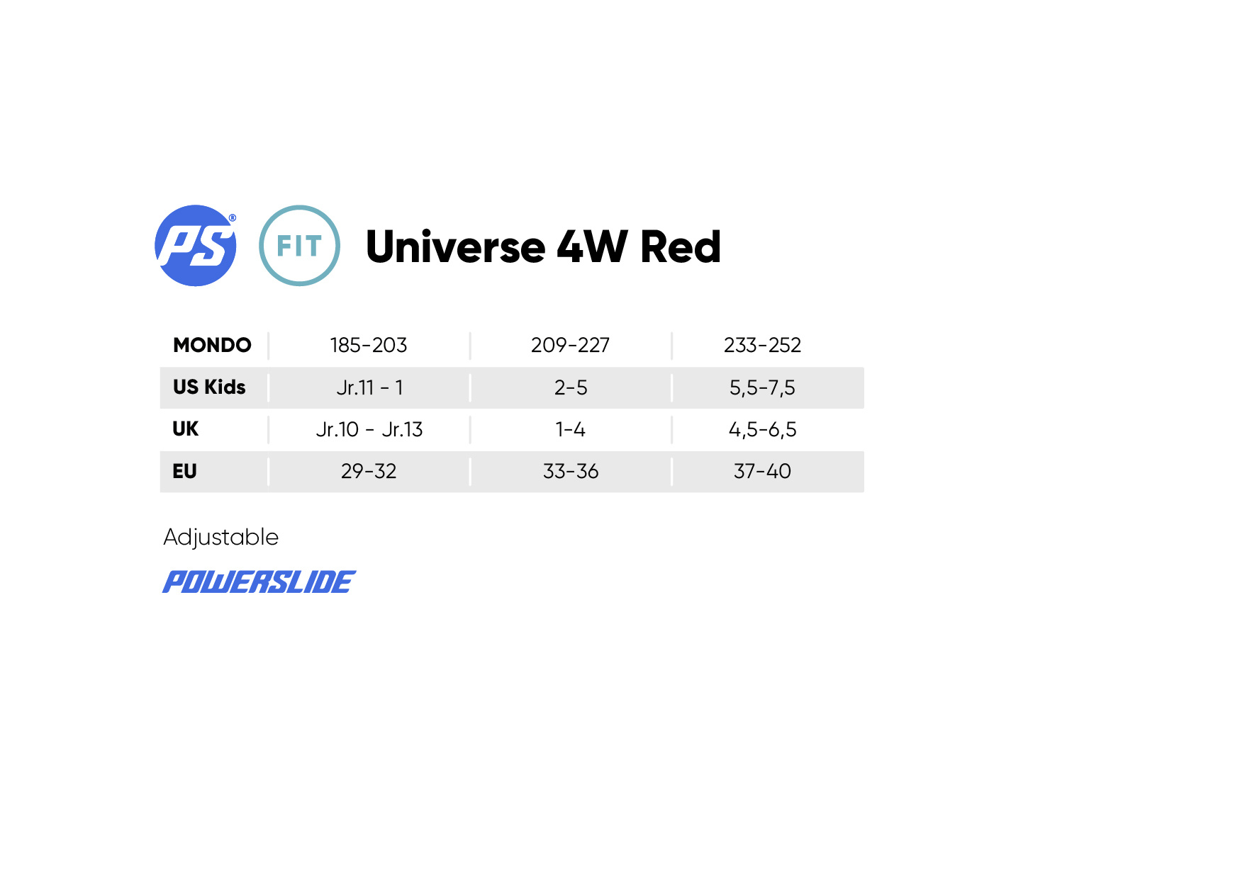Children grow quickly. The Powerslide Phuzion Universe 4W Red is size-adjustable covering 4 sizes, making it an excellent investment for parents with young, growing skaters.