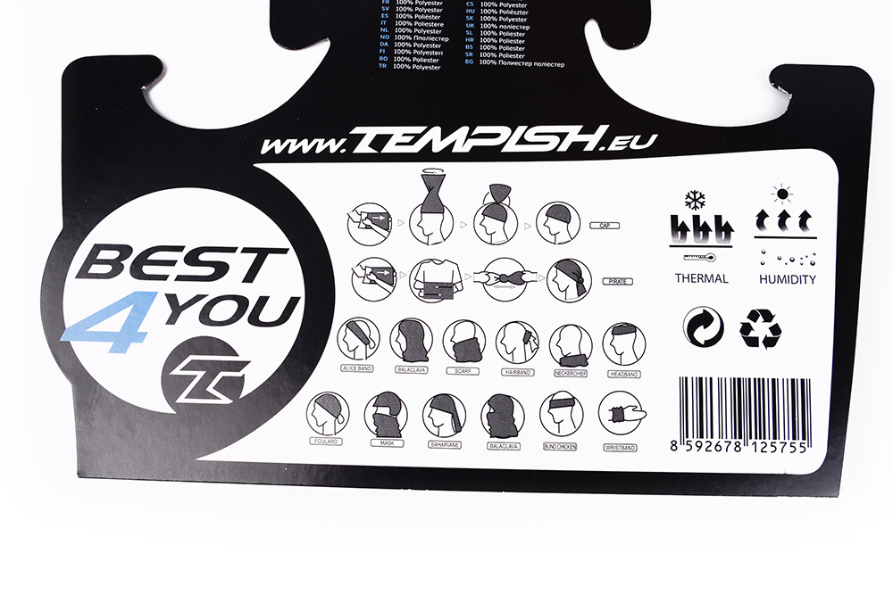Multifunkční tubusový šátek s originálním designem je vyroben z elastického polyesterového mikrovlákna. Je příjemný a měkký na nošení a má opravdu široké využití. Ochrání vám hlavu, krk, tváře, nebo ruce atd. Lze jej používat na jízdu na kole, outdoorové sporty, na turistiku, jako ochranu proti slunci, chladu, prachu, ale táké jako pomůcku při práci, na sepnutí vlasů, ochranu proti pocení atd. Můžete jej využít také jako doplněk svého outfitu při každodenním běžném použití. Díky své univerzální velikosti a elasticitě materiálu je vhodný jak pro dospělé, tak i pro děti. Materiál je skladný a nemačkavý, lehce pratelný.