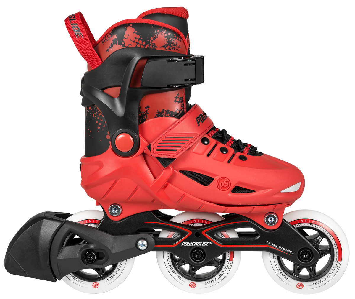 Lehký podvozek AL 3D Stamped je osazený kolečky Powerslide Infinity o velikosti 80mm, 84mm a 90mm (v návaznosti na velikost bruslí) s tvrdostí 85A a ložisky WCD ABEC 7. Bota je anatomicky polstrovaná pro dětskou nohu, komfortní, z vnější strany tvořená plastovým skeletem a syntetickou kůží. Úhly upínacích prvků a kloubu jsou pečlivě nastaveny tak, aby napomáhaly zvýšit komfort při zachování pevného a jistého upnutí nohy. Takto poskytovaná opora zabraňuje ztrátám energie při bruslení a zajišťuje vysokou míru bezbečí.