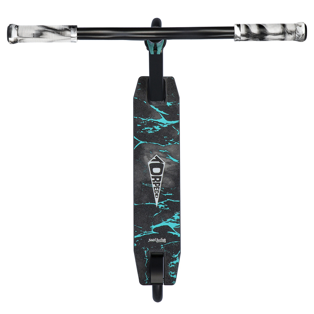 Freestyle koloběžka Torpedo s jedinečným designem a barevnou kombinací je předurčena pro jízdu ve skate parku a triky. kolečka s kovovými jádry garantují dostatečnou pevnost při skocích a tricích.