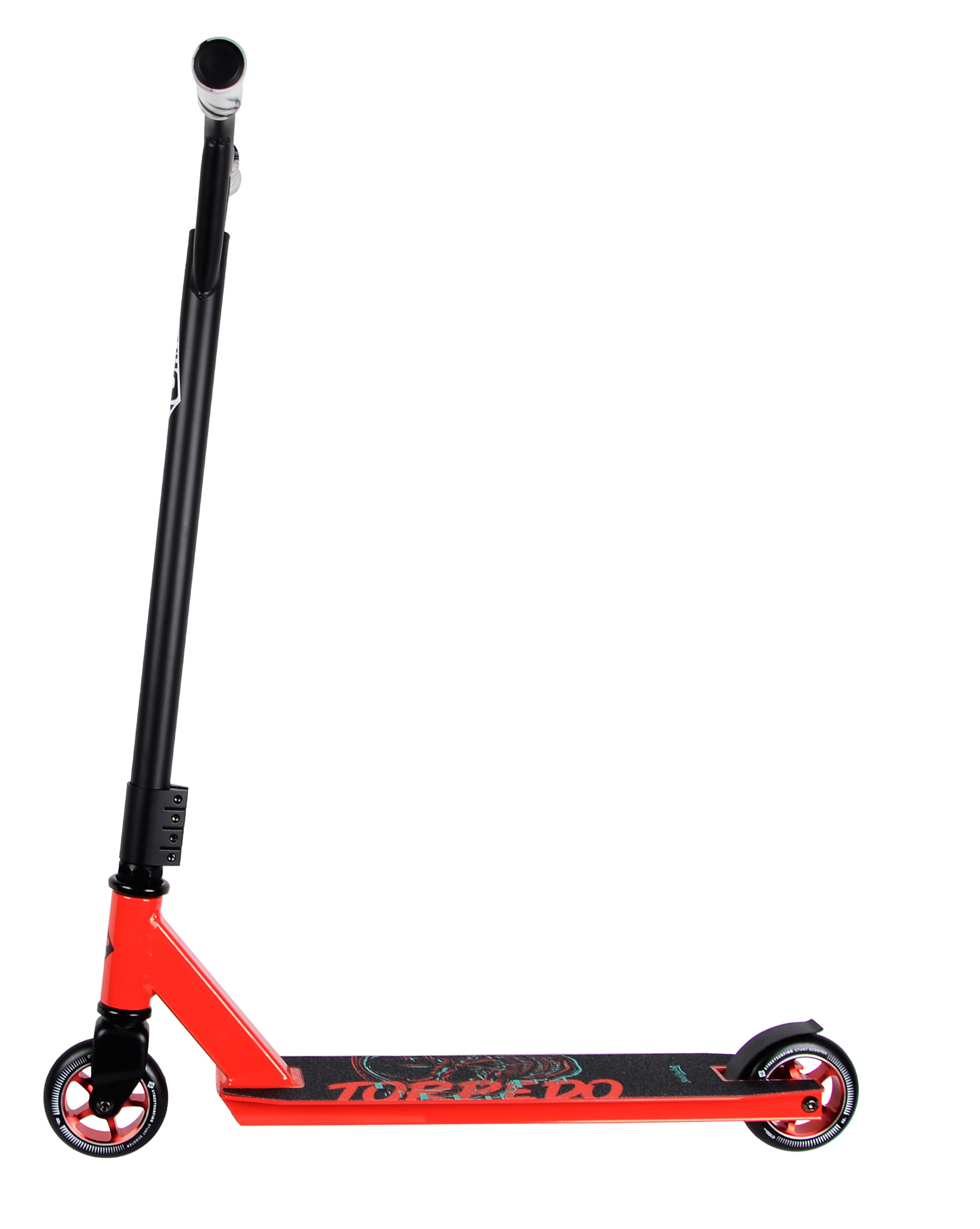 Freestyle koloběžka Torpedo s jedinečným designem a barevnou kombinací je předurčena pro jízdu ve skate parku a triky. kolečka s kovovými jádry garantují dostatečnou pevnost při skocích a tricích.
