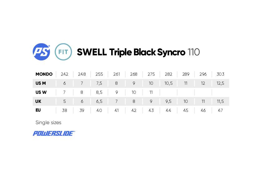 Navrženy kolem pokročilé kolekce Powerslide Swell, Swell Triple Black Syncro 110 nabízí stylový vzhled, vysoký výkon a inovativní brzdový systém, který zvyšuje bezpečnost a poskytuje bruslařům maximální kontrolu a důvěru.