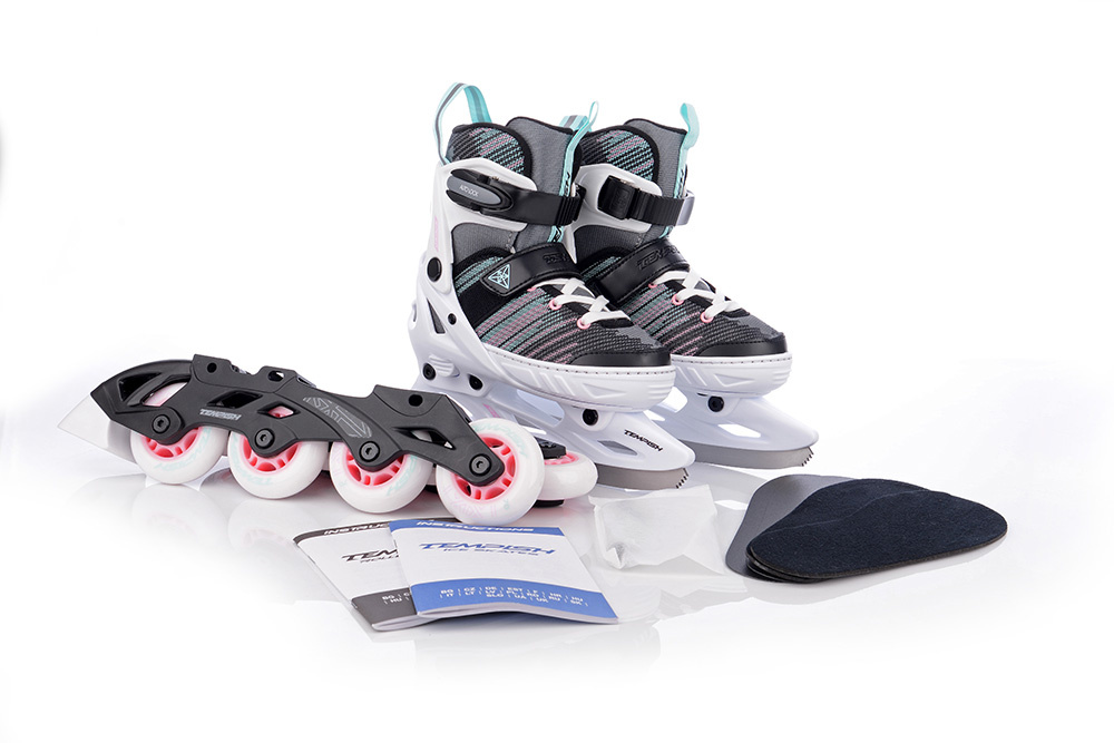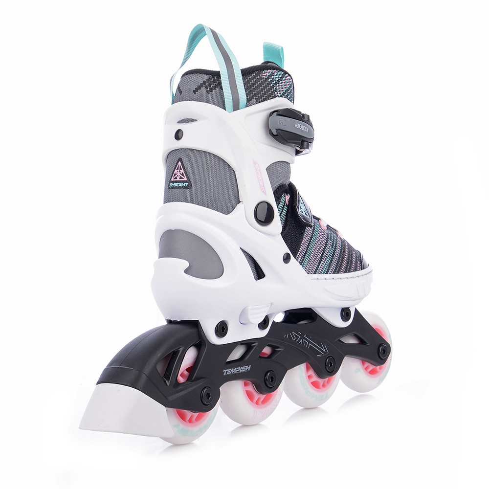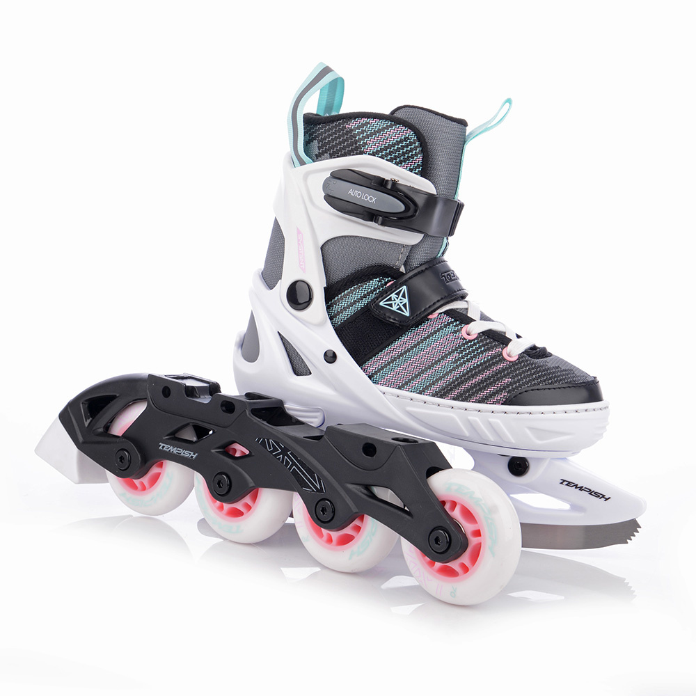 SYSTENT GIRL DUO jsou dětské roztahovací brusle s duální konstrukcí, určené pro celoroční rekreační bruslení. Díky chytrému systému lze během chvíle vyměnit zimní nůž za podvozek s kolečky a naopak – stačí uvolnit tři šrouby.