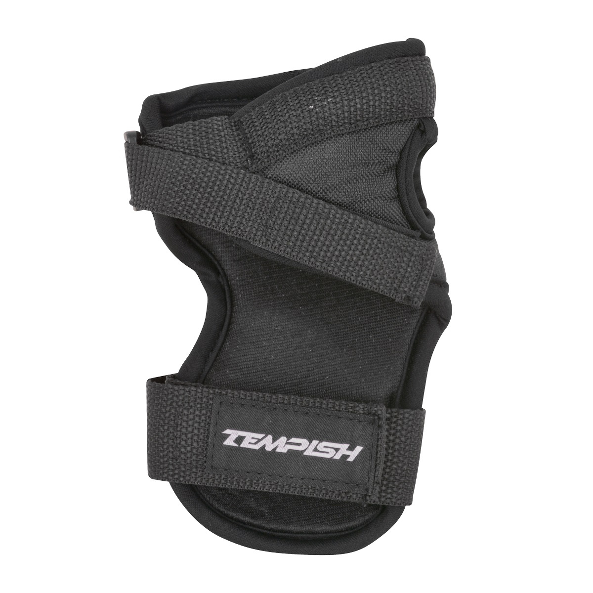 Chránič zápěstí má plastickou výztuhu, která chrání zápěstí z vnitřní strany proti poranění. Vnitřní část všech chráničů je ušita z jemné textilie, která dobře saje vlhkost (pot) a jemně klouže po kůži. Chránič zápěstí se pevně připevní za pomocí tenčího pásku na dlani a širšího pásku na zápěstí s nášivkou s logem Tempish.