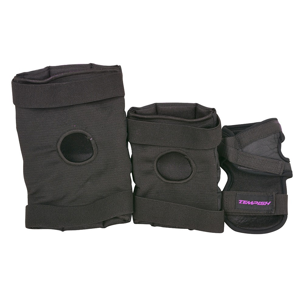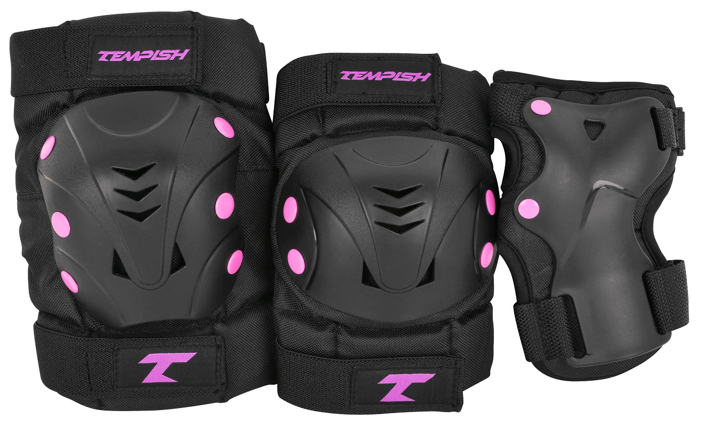 Třídílná sada chráničů na kolečkové brusle Tempish Taky zajistí bezpečnou ochranu základních částí lidského těla, kde dochází nejčastěji k poraněním. Sada chráničů Tempish na kolečkové brusle se skládá z chrániče zápěstí, kolen a loktů.