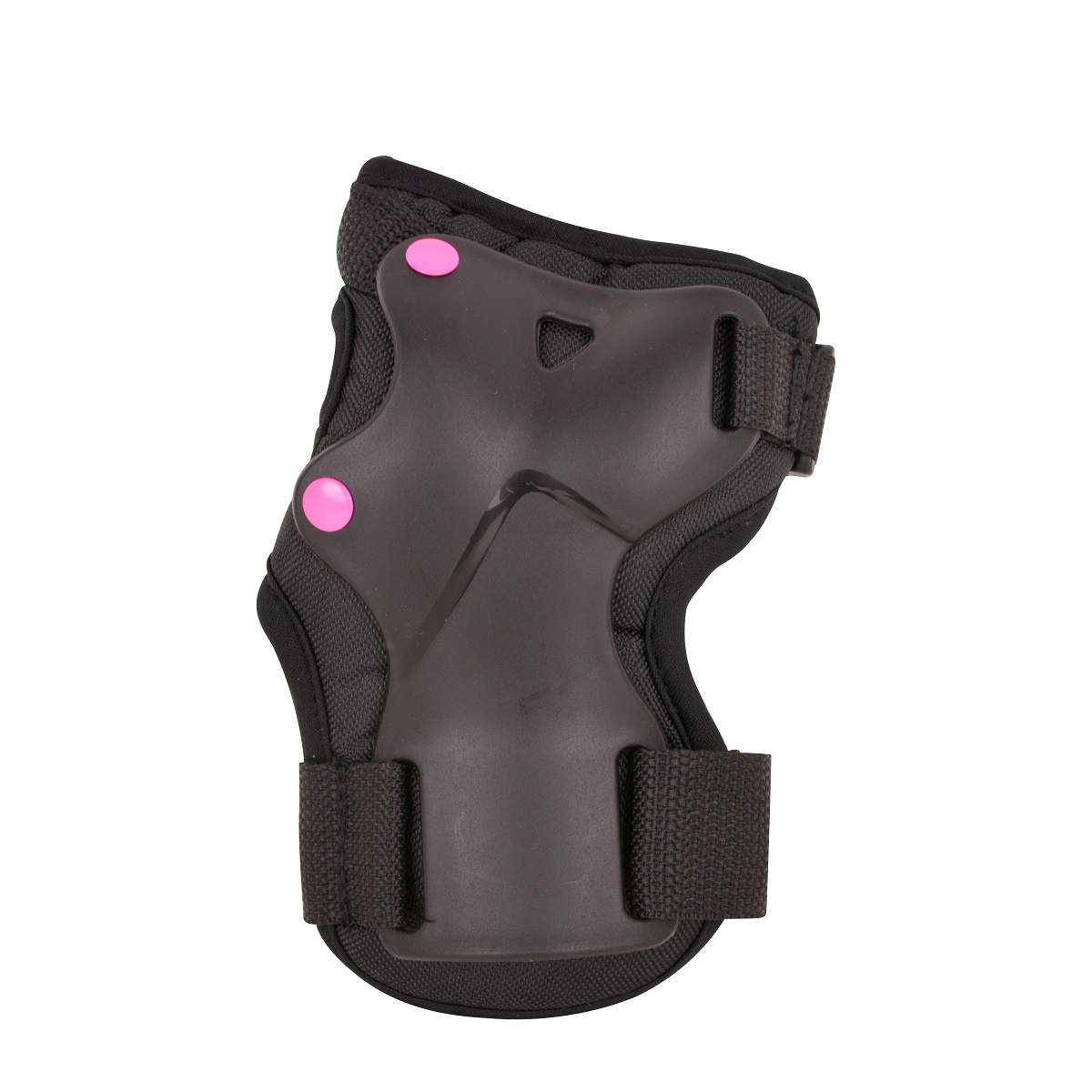 Plastická skořepina chráničů kolen a loktů je velmi houževnatá a má perfektní anatomický tvar, který zajistí stabilní polohu chrániče, pohodlnou funkci při bruslení a pohybu a vysokou míru ochrany při pádu. K textilní části chrániče je pevně připevněna nýty.