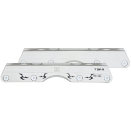 The KIZER Team Fluid IV White stands out as one of the premier anti-rocker frames in the aggressive skating market. Crafted for ultimate performance in grinds, this frame is both lightweight and incredibly strong. Its Fluid material ensures seamless slides across various surfaces, from rails and coping to marble and rough concrete. The innovative groove shape enhances control, directing directly to the anti-rocker wheel for precise lock-on and swift, smooth slides. Designed for versatility, the frame accommodates up to 60mm wheels on the outside and standard anti-rocker wheels on the inside, delivering maximum speed and optimal height for improved balance and stability. Available in three different lengths, the KIZER Fluid IV fits various foot sizes. It includes double steel axles and aluminum frame spacers for enhanced wheel performance and longevity. Trusted by aggressive skaters for years, the KIZER Team Fluid IV White elevates an already exceptional range of frames. Experience the difference with the KIZER Team Fluid IV White.