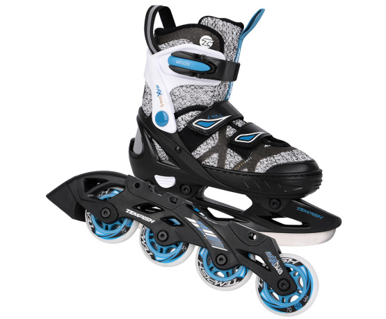 Dětské roztahovací brusle Tempish ENBO DUO disponují speciální duální konstrukcí pro celoroční rekreační bruslení. Konstrukční systém umožňuje záměnu zimních bruslí za podvozek s kolečky. Jednoduchým povolením tří šroubů přeměníte zimní brusle na kolečkové inline brusle a naopak.