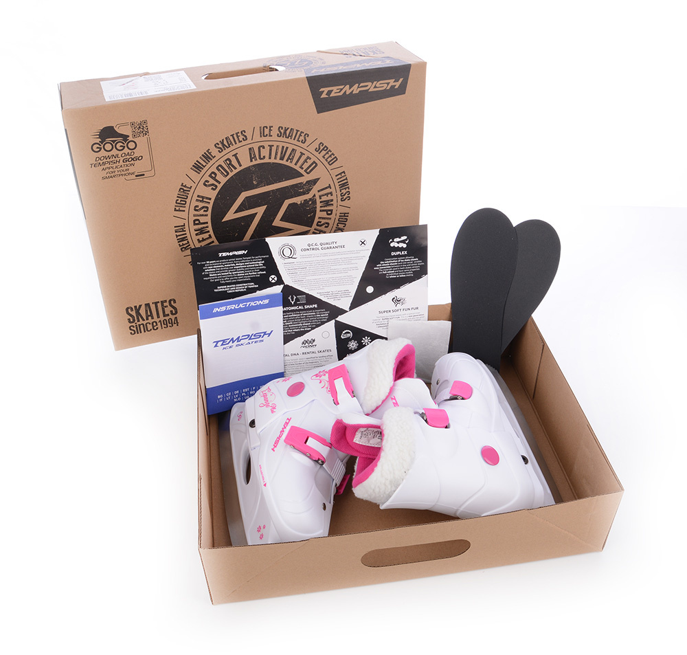 Předností holčičích nastavitelných ledních bruslí Tempish FUR EXPANZE PLUS GIRL je jednoduché nastavení velikosti brusle na 4 čísla, stačí v boční části skeletu vyšroubovat šroub za pomocí přiložených imbusových klíčů a přesunout skelet boty na požadovanou velikost. Následně lze také nastavit na požadovanou velikost vnitřní botičku.