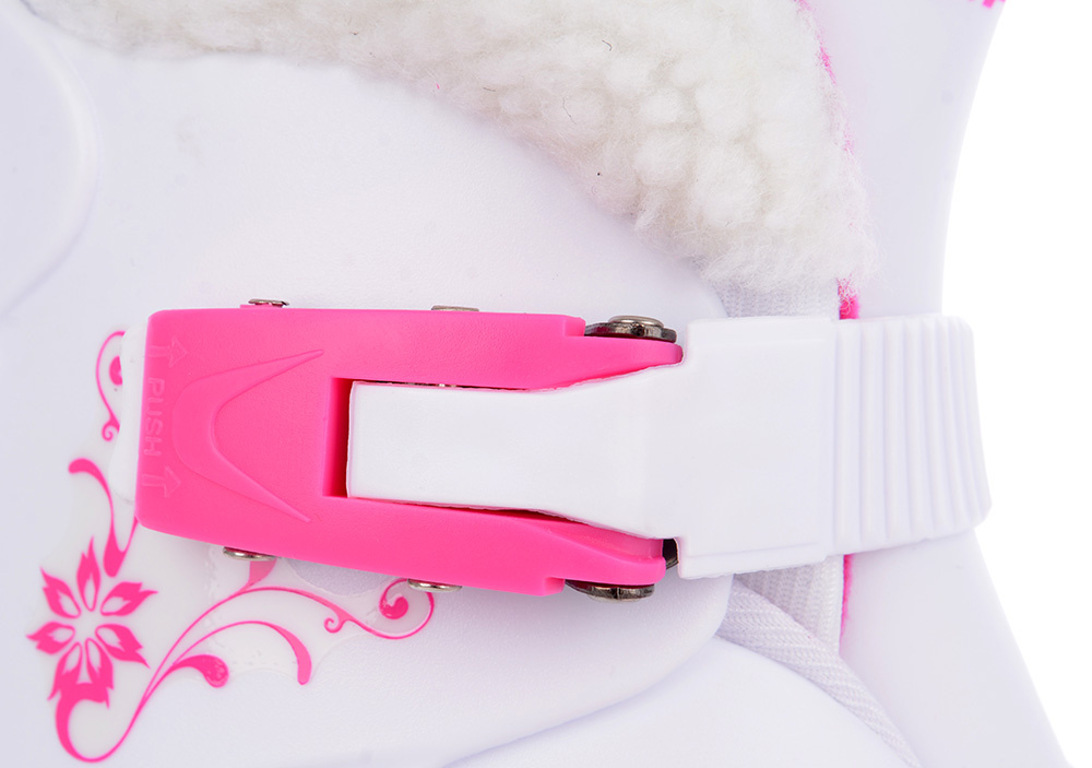 Výhodou dívčích ledních bruslí Tempish FUR EXPANZE PLUS GIRL je také upnutí nohy pohodlným a rychlým zapínáním pomocí dvou přezek.