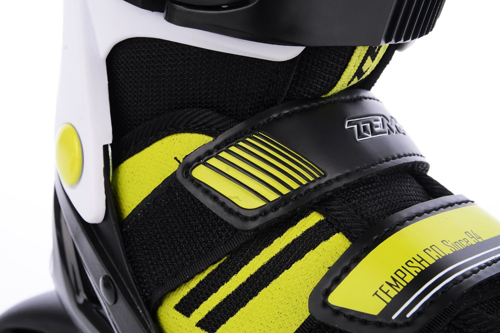 Velkou výhodou tohoto modelu je absence tkaniček, které jsou nahrazeny páskem na suchý zip, díky kterému je velmi jednoduché a rychlé chodidlo v brusli dostatečně zpevnit.