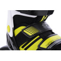 Skelet nastavitelných chlapeckých bruslí 2v1 je pružný až do -20°C. brusle jsou určeny pro rekreační sport, začínající a pokročilé malé bruslaře. Měkká rychleschnoucí výstelka zajišťuje pohodlí dětské nohy. Vnitřní botička je dobře anatomicky tvarována, vnější plastový skelet drží pevně kotník.