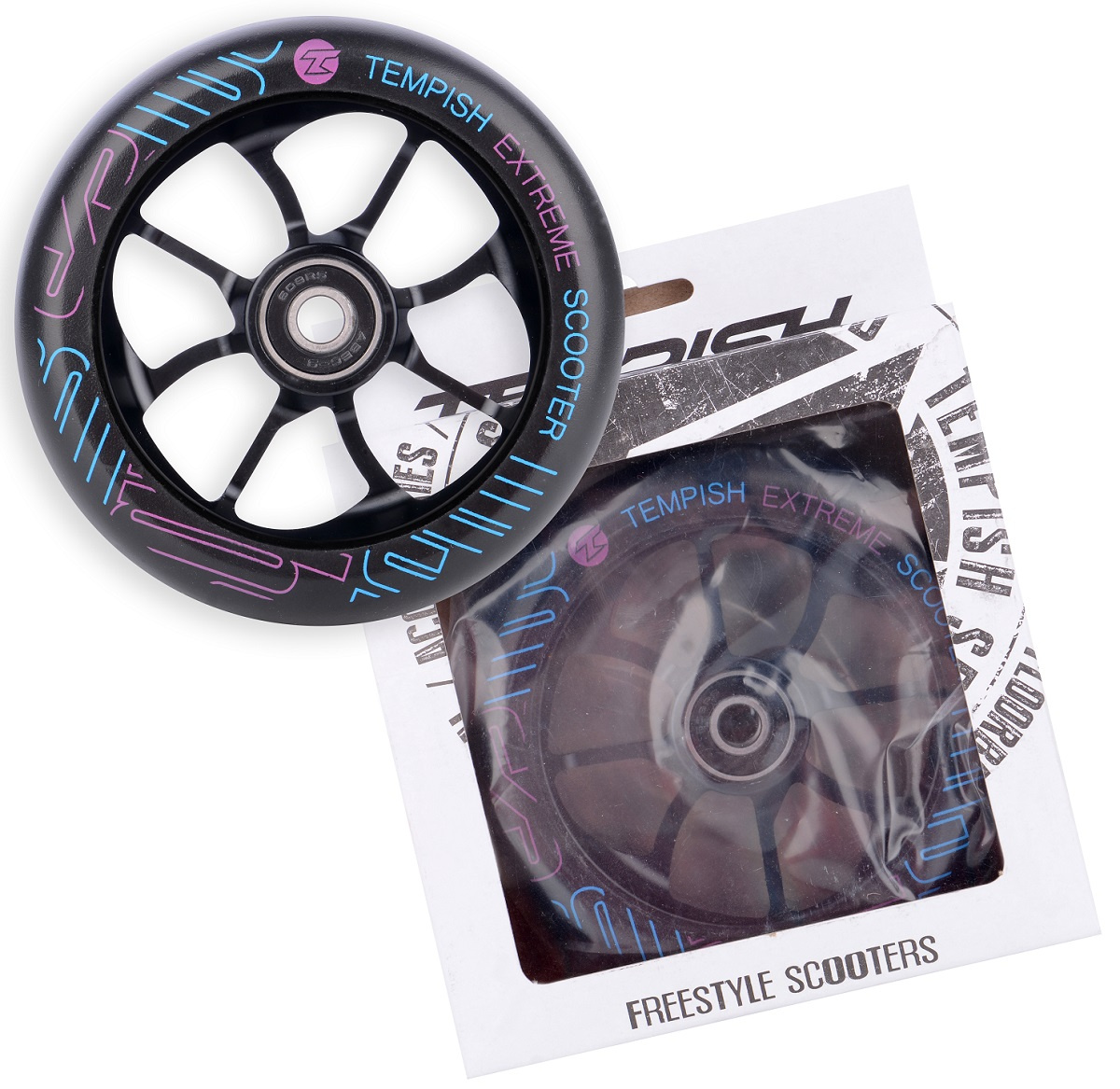 Náhradní kolečko Tempish pro freestylové koloběžky s rozměry koleček 110 x 24 mm. Hodí se jak pro začátečníky, tak pro zkušené jezdce. Kolečko má kvalitní PU směs a kovový střed. V kolečku jsou zalisovaná přesná ložiska ABEC 9 chrom s odnímatelnou prachovkou pro snadné čištění ložiska. Kolečko poskytuje nízkou hmotnost, vysokou rychlost, kvalitní rebound a vysokou odolnost.