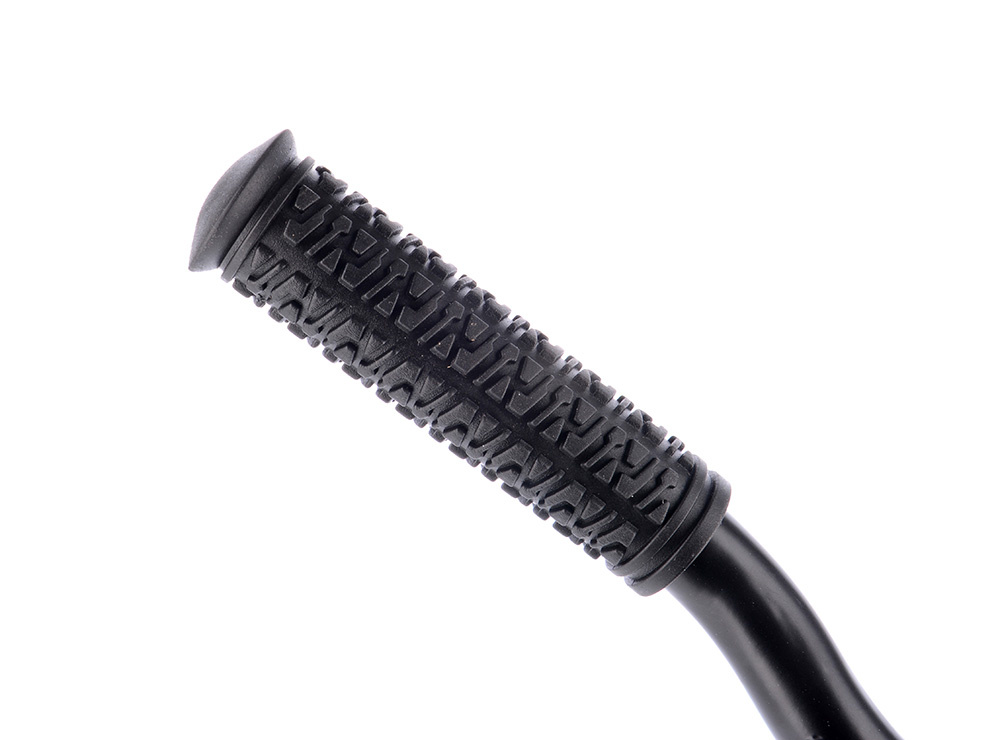 Na vyztužených řídítkách z kvalitní slitiny hliníku o rozměru 500 x 430 mm (19,7” x 16,9”) se nachází 100 mm gripy z TPR.