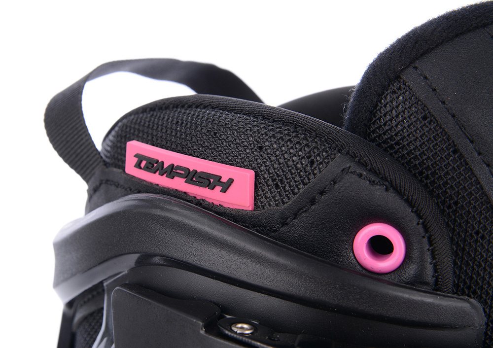 Plastové chrániče na vnější straně bruslí jsou vyměnitelné. Dírky na tkaničky jsou osazeny pevnostními kovovými kroužky pro ochranu tkaniček a lepší utahování. Díky použití voskovaných tkaniček o šířce 10mm je možné snadnější postupné utahování tkaniček a efektivnější uzavření skeletu brusle k chodidlu.