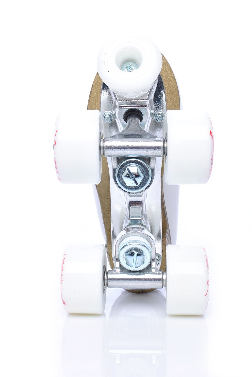 Bota dětských quad bruslí Tempish TINY PLUS je vyrobena z pravé hovězí kůže a svršek je osazen třpytivými kamínky. Bota je středně vyztužená s přechodem ke komfortnímu (měkčímu) vyztužení v oblasti nad kotníkem, což zajišťuje pohodlný pohyb. Vnitřní materiál je vlhkost odvádějící BK mesh.