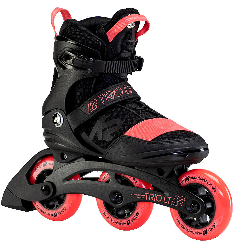 Velmi rychlé a lehké dámské inline brusle K2 určené na fitness, sportovní jízdu a dlouhé tratě. Nový model K2 Trio LT 100 W patří k tomu nejlepšímu, co značka K2 nabízí. Pohodlná prodyšná bota s pevným skeletem je usazena na lehkém hliníkovém rámu s kolečky o průměru 100mm a tvrdostí 83A. Tento setup zajistí dostatečnou rychlost při dokonalé ovladatelnosti. Bota s boční výztuhou a oporou klenby je vyrobena z paměťového materiálu, který se dotváří podle tvaru nohy.