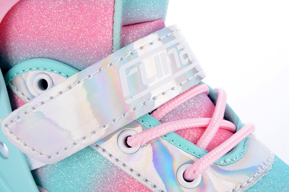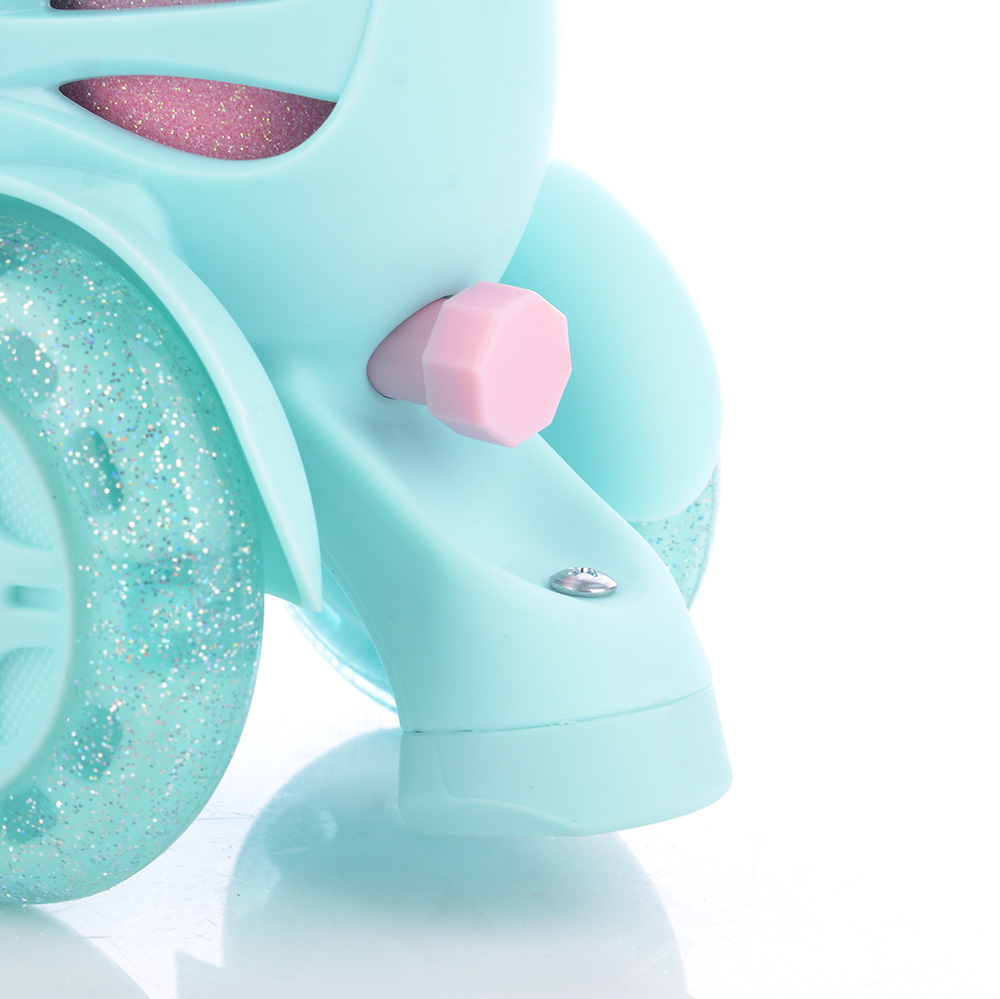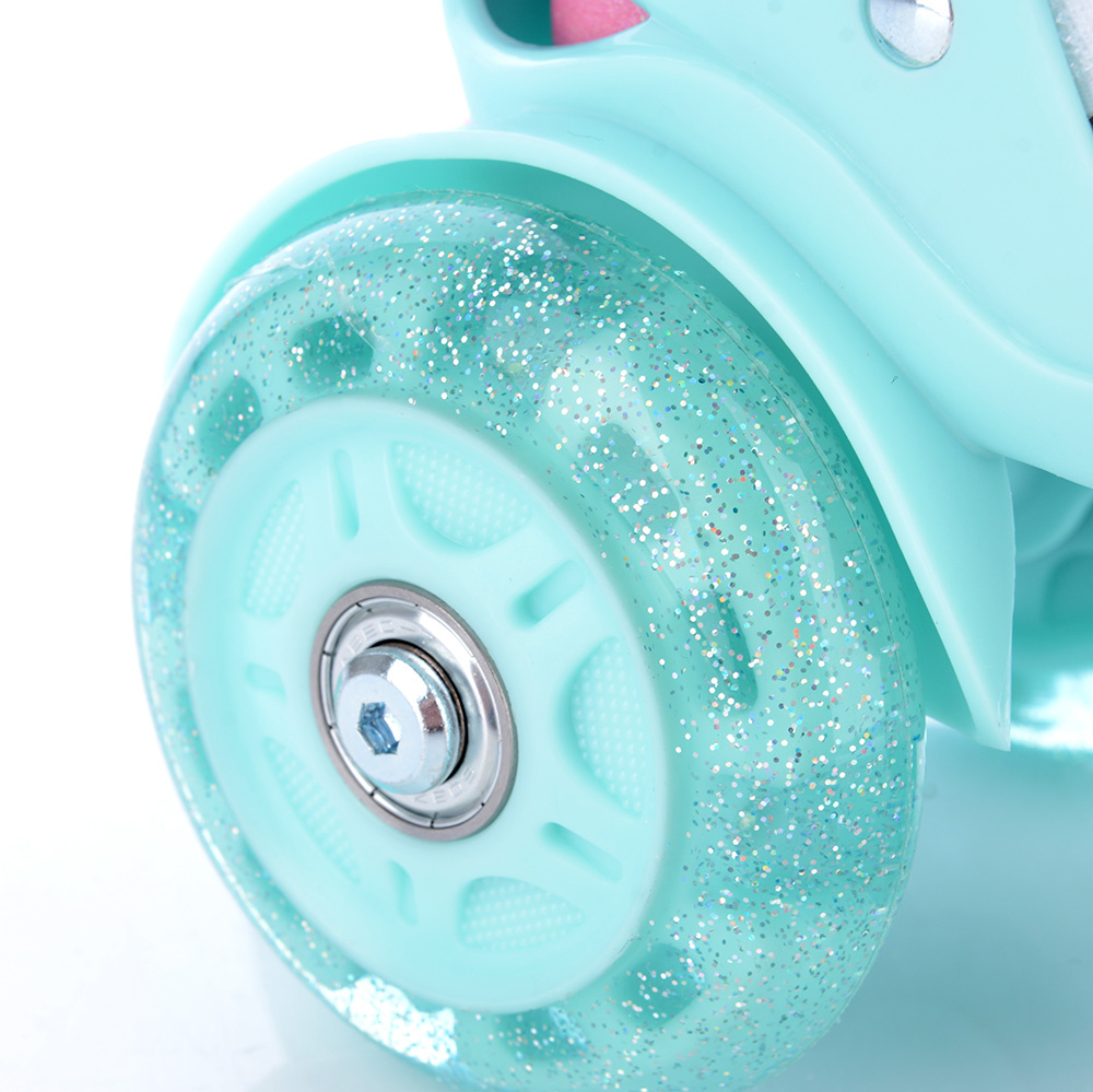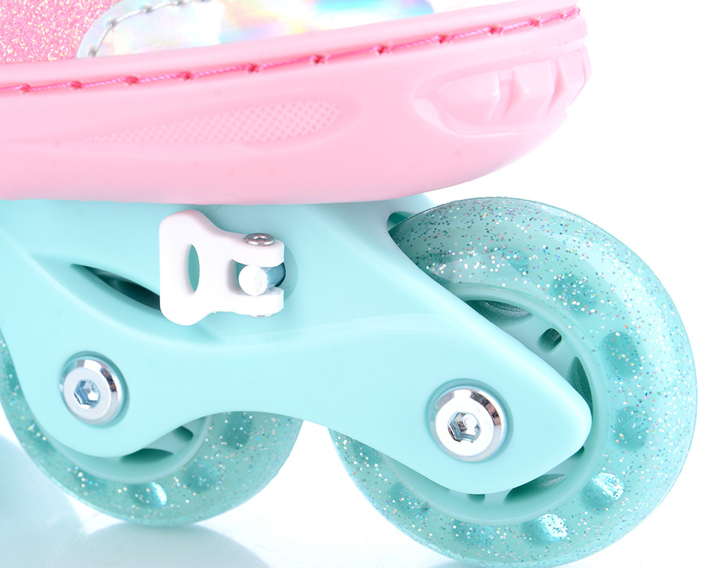 - PU kolečka s třpytkami – nejenže skvěle vypadají, ale zároveň zaručují hladkou, komfortní a tichou jízdu.