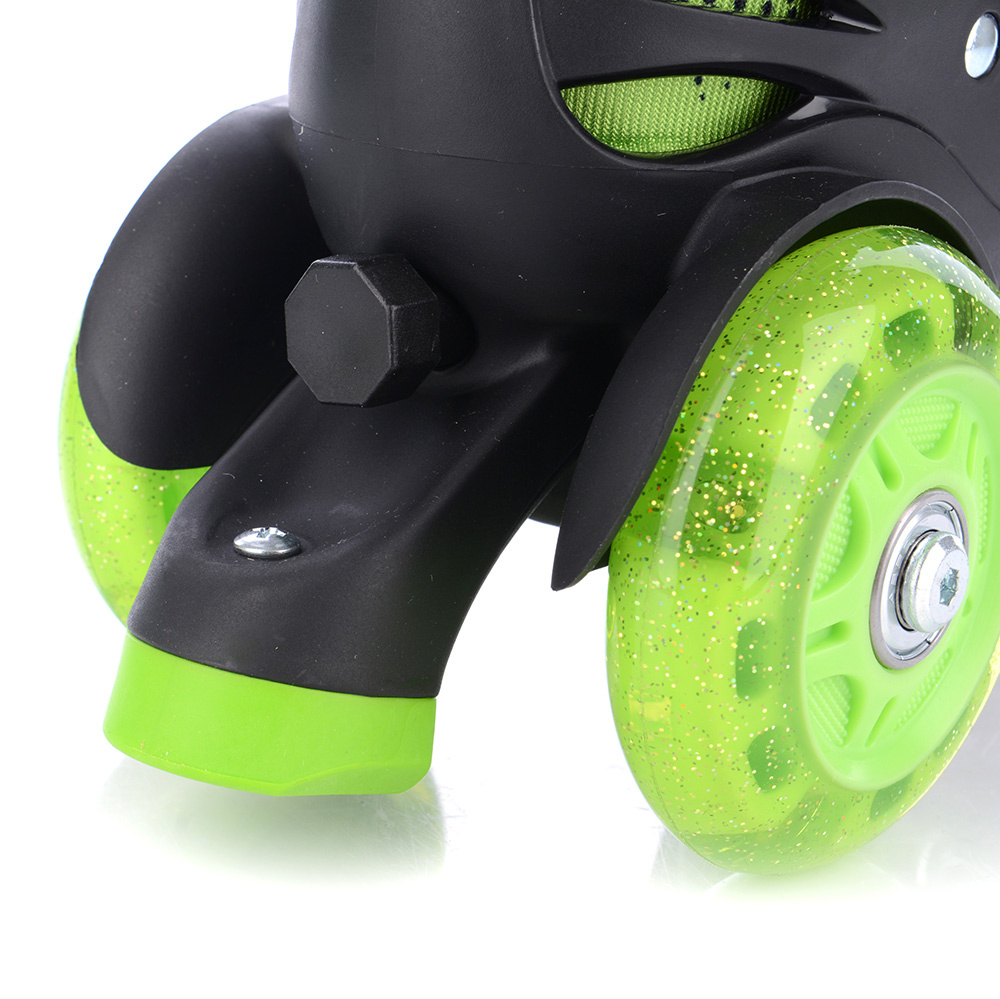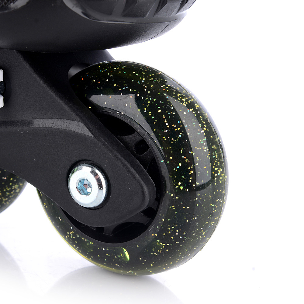 - PU kolečka s třpytkami – nejenže skvěle vypadají, ale zároveň zaručují hladkou, komfortní a tichou jízdu.