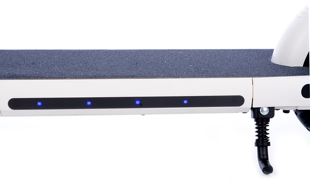 Nachází se zde také tlačítko na zapnutí a vypnutí světelného LED RGB pásků, které jsou umístěny po stranách nášlapné desky.