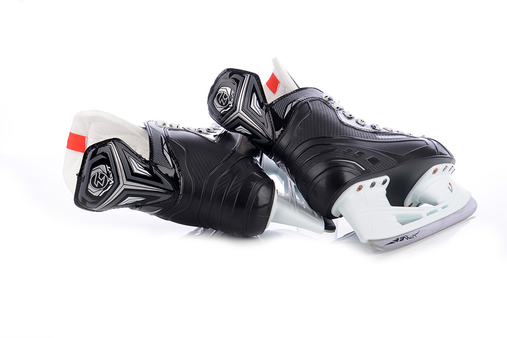 Vnější materiál bruslí je vyroben z velmi odolného kompozitního termoplastu, což zaručuje jejich dlouhou životnost a pevnost i při častém používání na ledě. Uvnitř bruslí najdeme komfortní CAMBRA brushed nylon a anatomickou vkládací stélku, které zajišťují pohodlí během dlouhých tréninků. Výstelka bruslí je anatomicky tvarována a vybavena pěnovými polštářky v oblasti kotníků, což zajišťuje maximální komfort a ochranu.