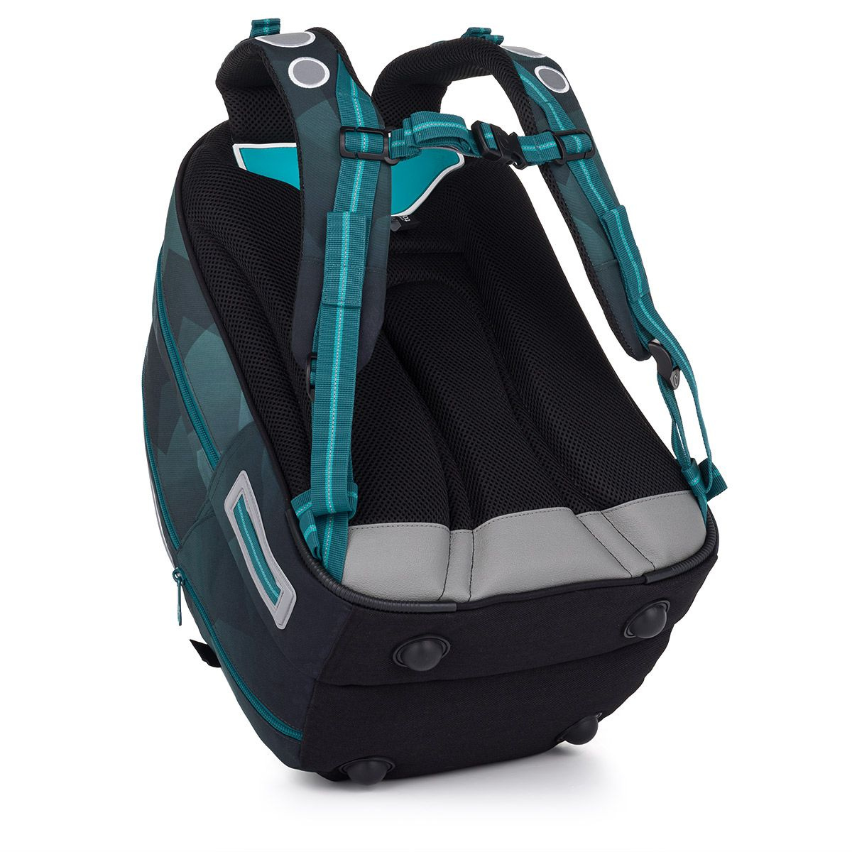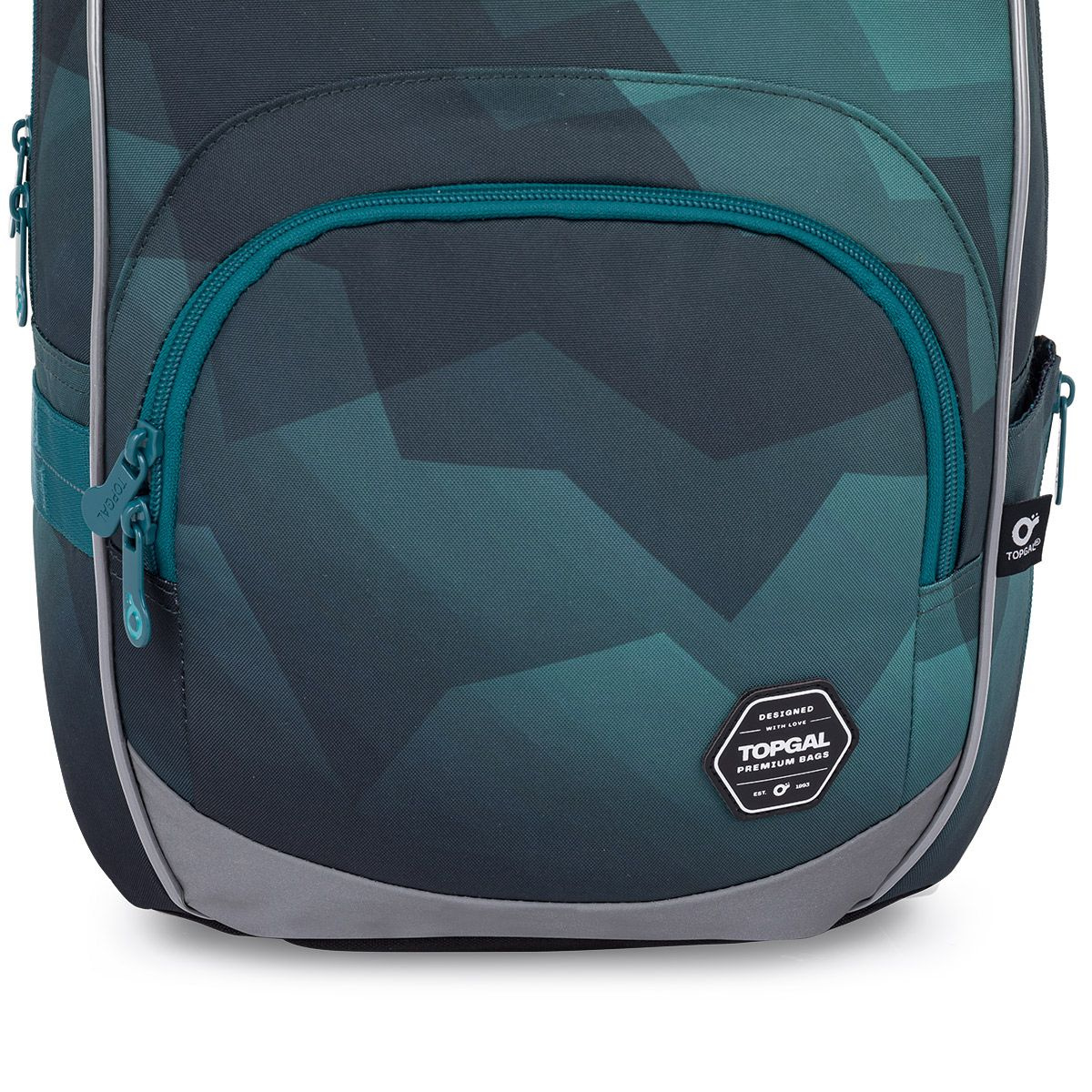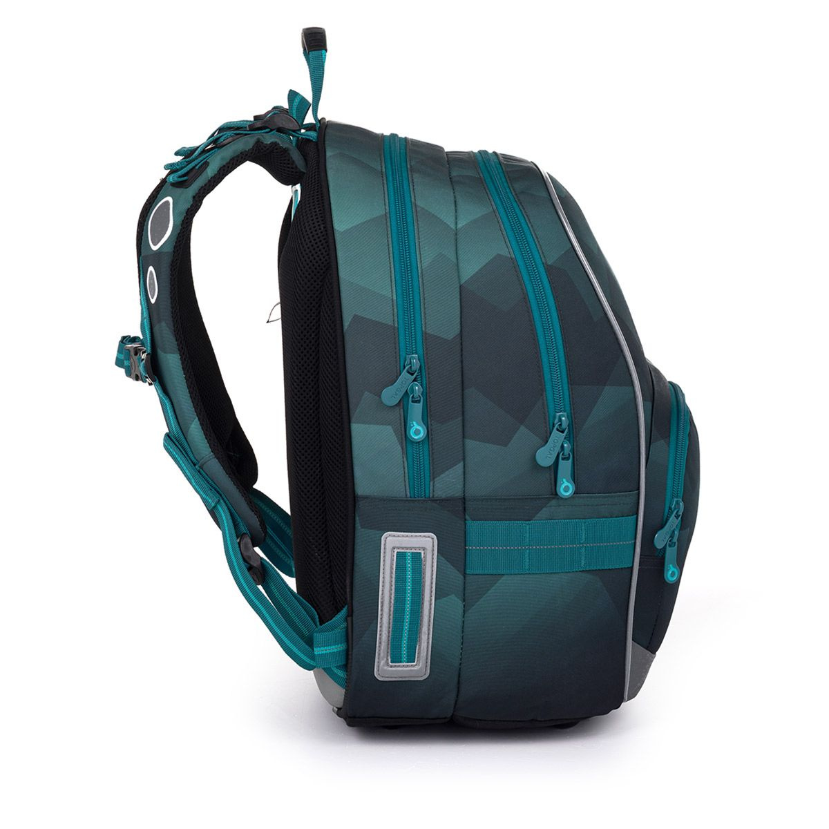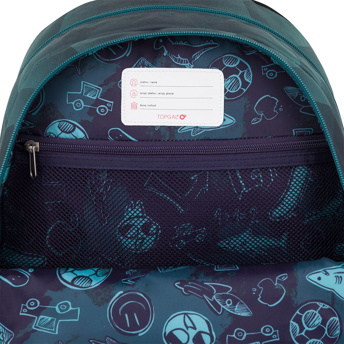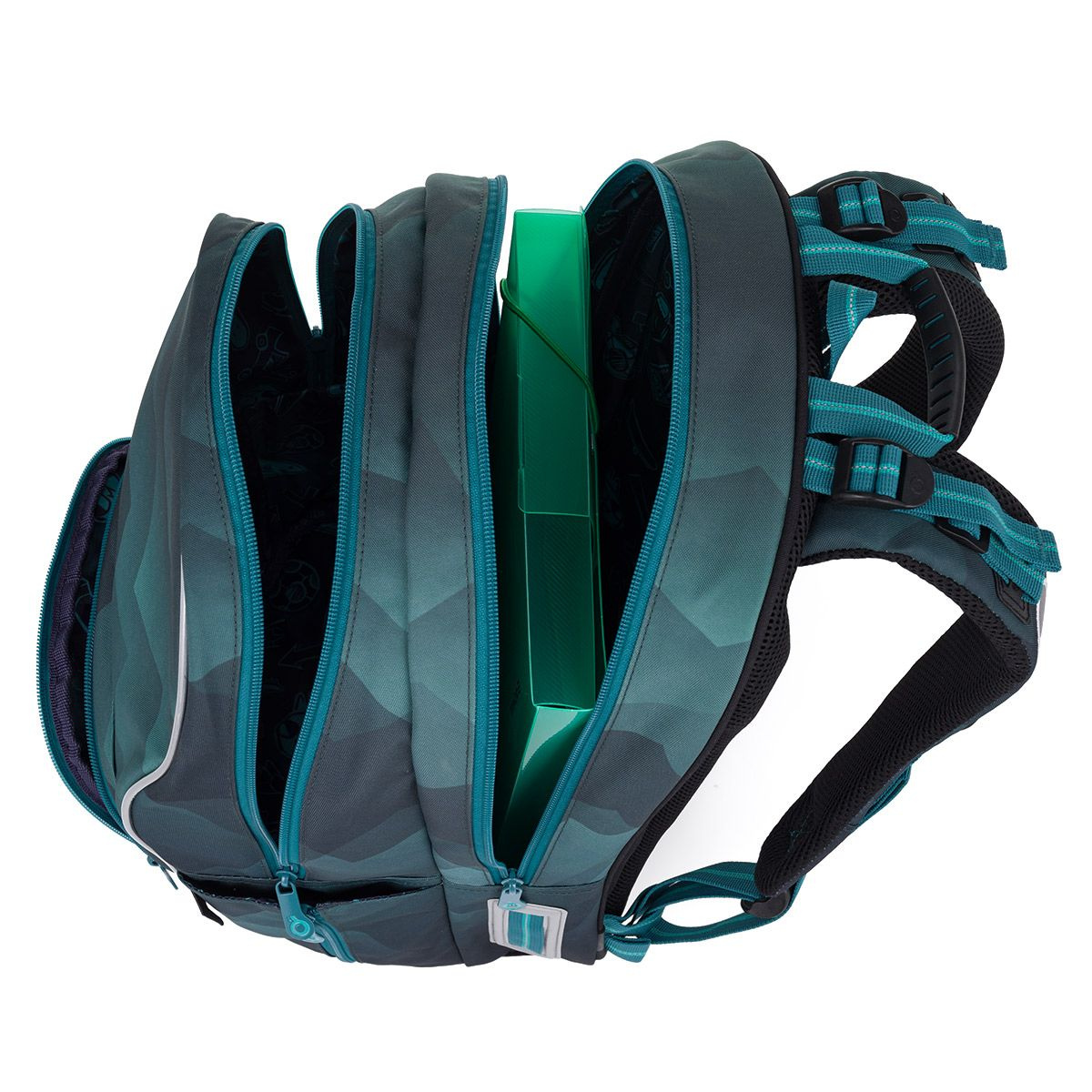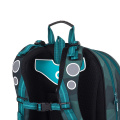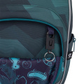batoh má dvě objemné hlavní komory. Do nejširší zadní komory dejte nejtěžší učebnice nebo desky na sešity, abyste rozložili váhu učiva. Přední komora je o něco užší, je v ní ukrytá malá síťová kapsa na zip a jmenovka.